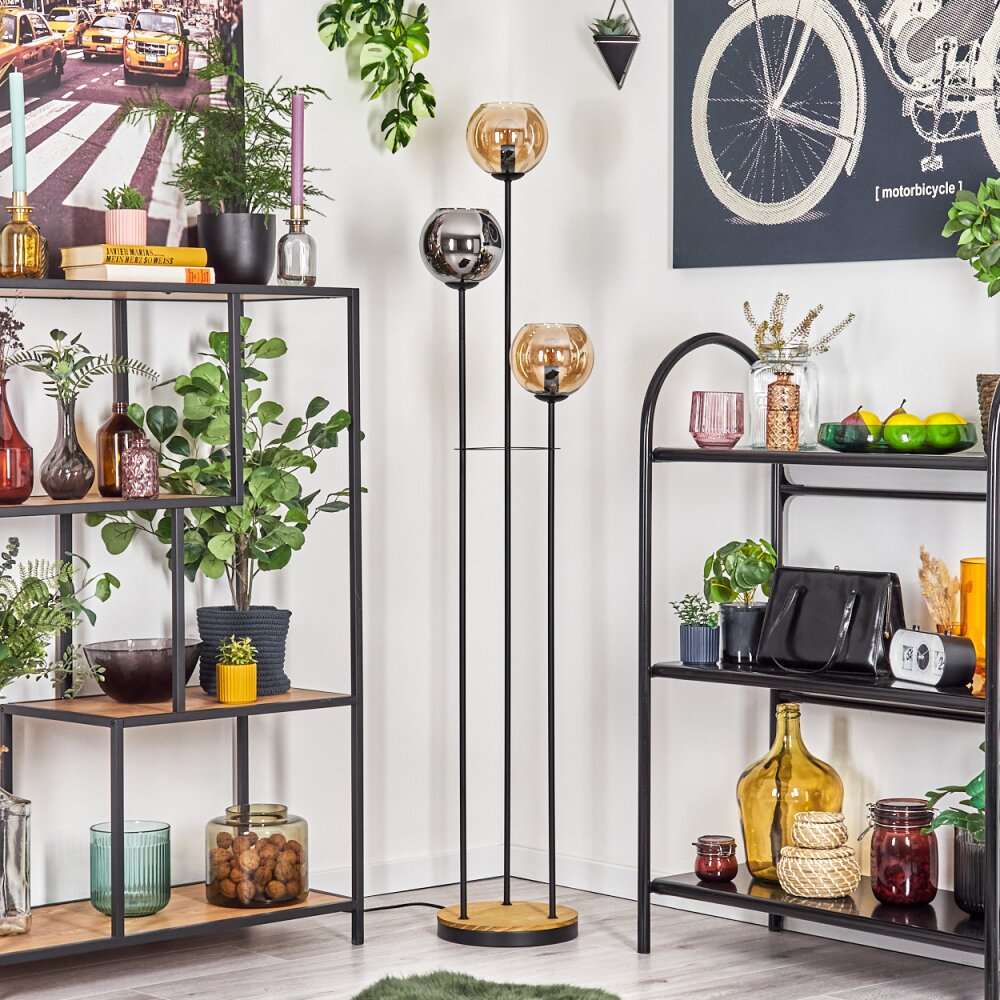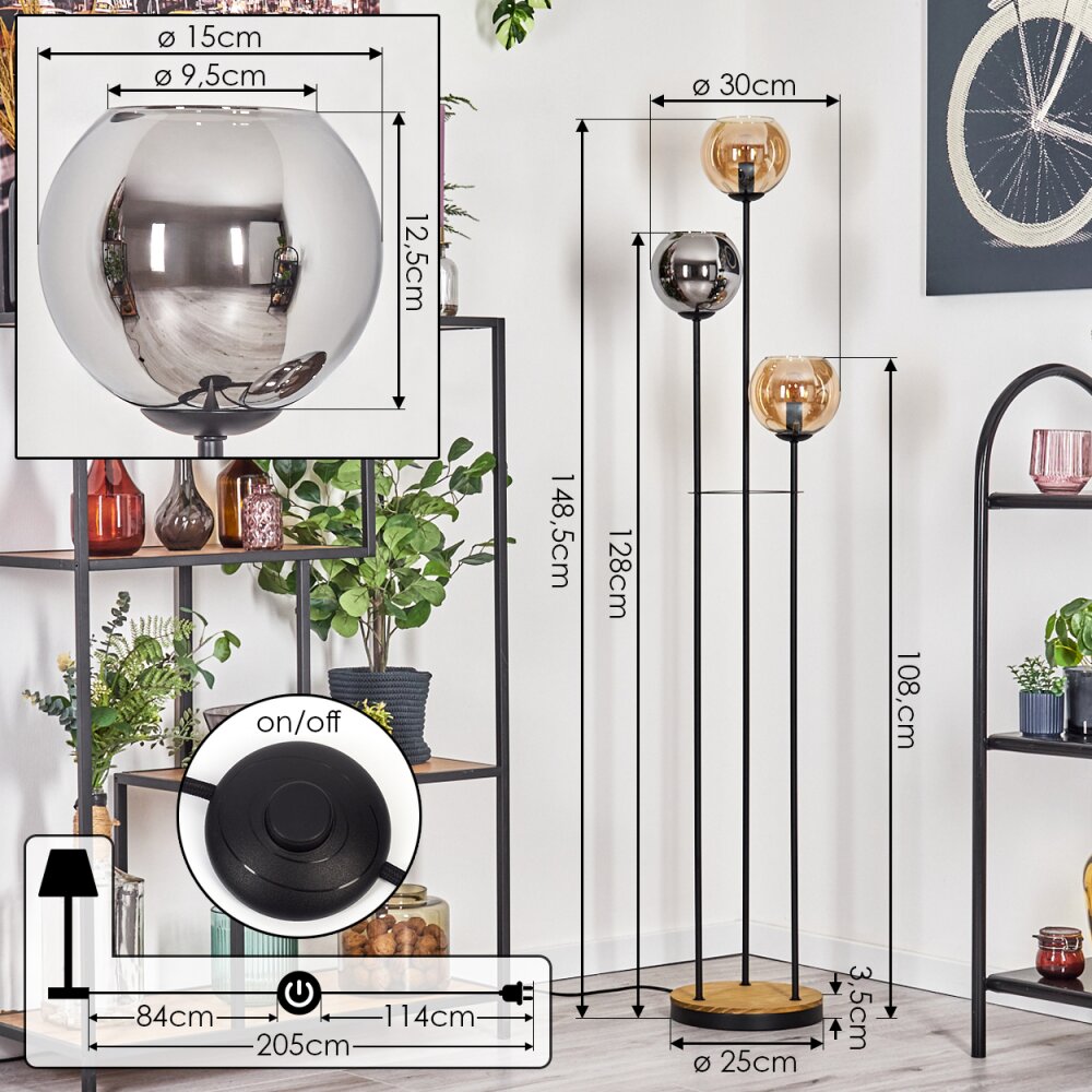 Koyoto Staande lamp 30 cm Hout donker, Zwart, 3-lichts