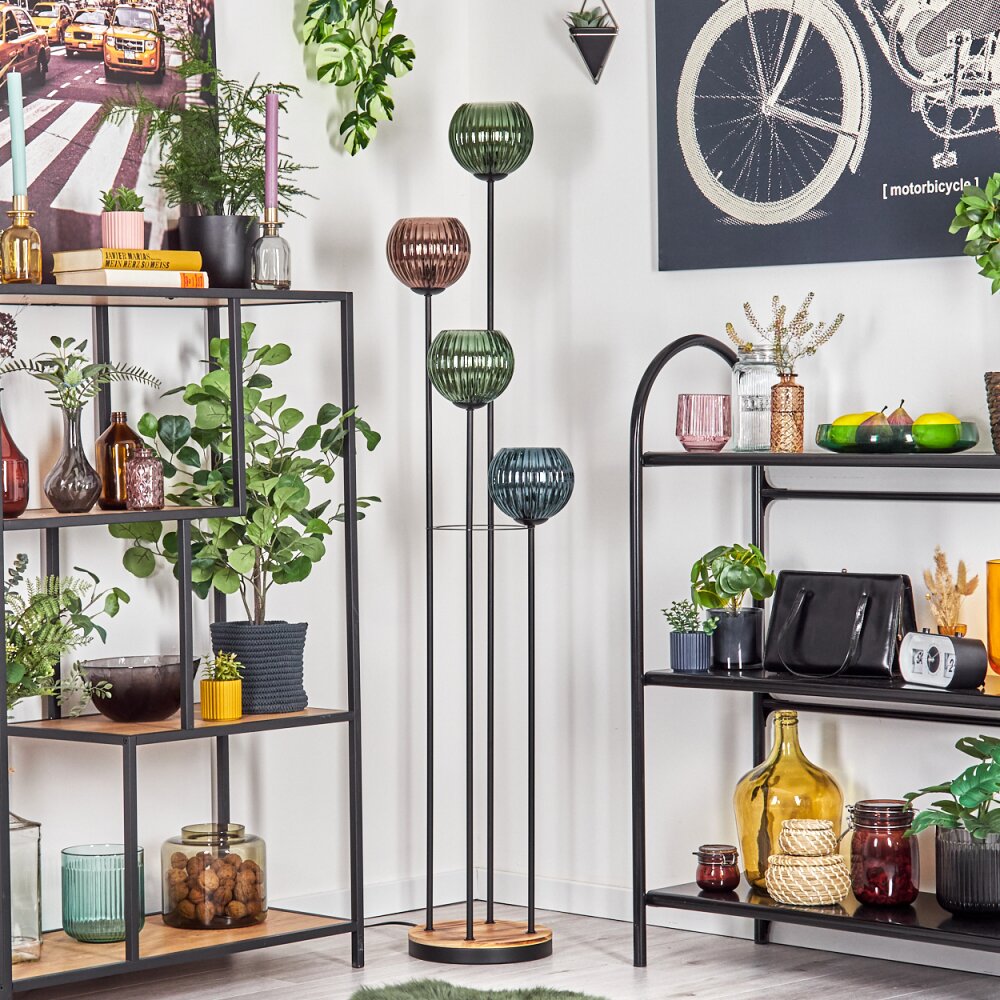 Schanis Staande lamp Natuurlijke kleuren, Zwart, 5-lichts