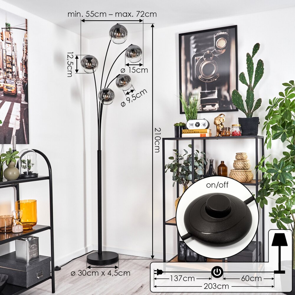 Koyoto Staande lamp - Glas 15 cm Duidelijk, Rookkleurig, 5-lichts