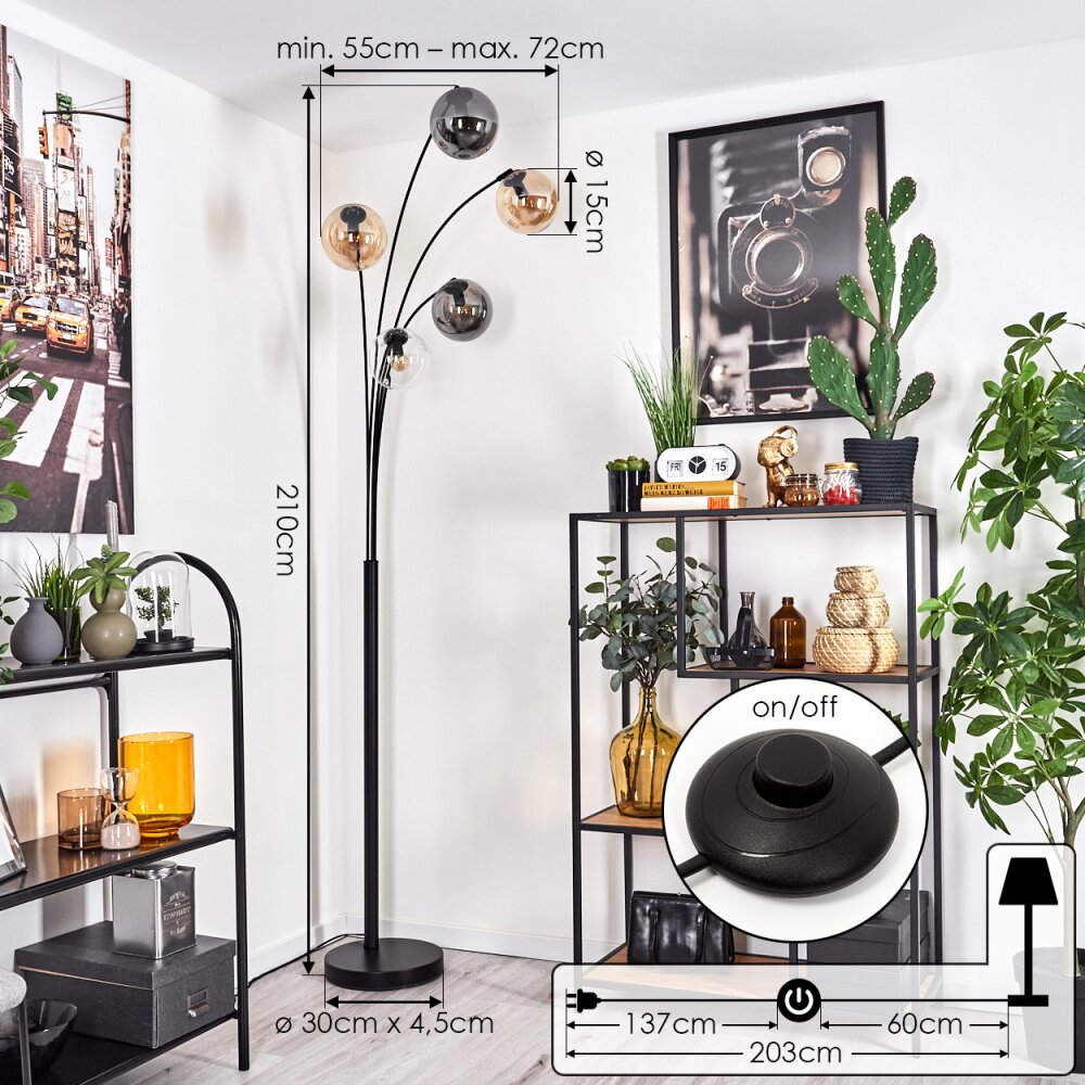 Koyoto Staande lamp - Glas 15 cm Amber, Duidelijk, Rookkleurig, 5-lichts