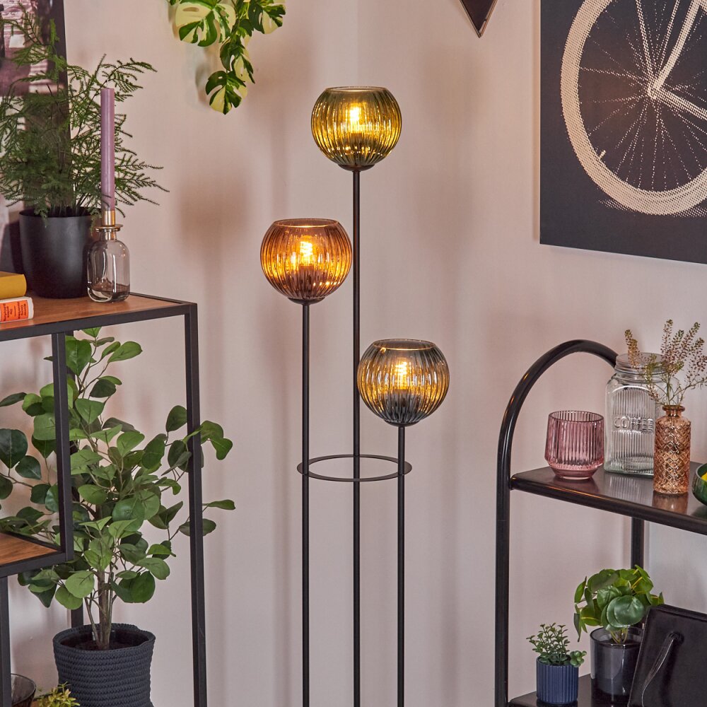 Koyoto Staande lamp Hout licht, Zwart, 3-lichts
