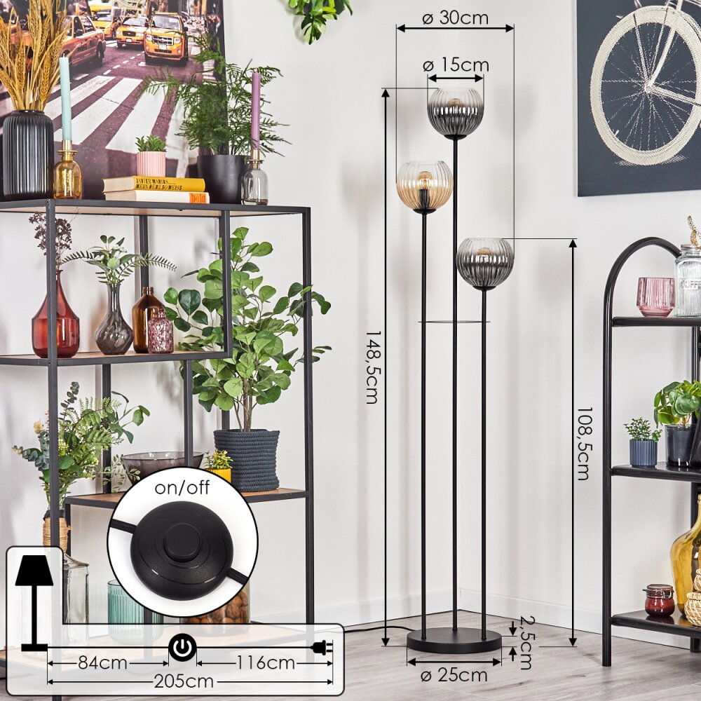 Koyoto Staande lamp Zwart, 3-lichts