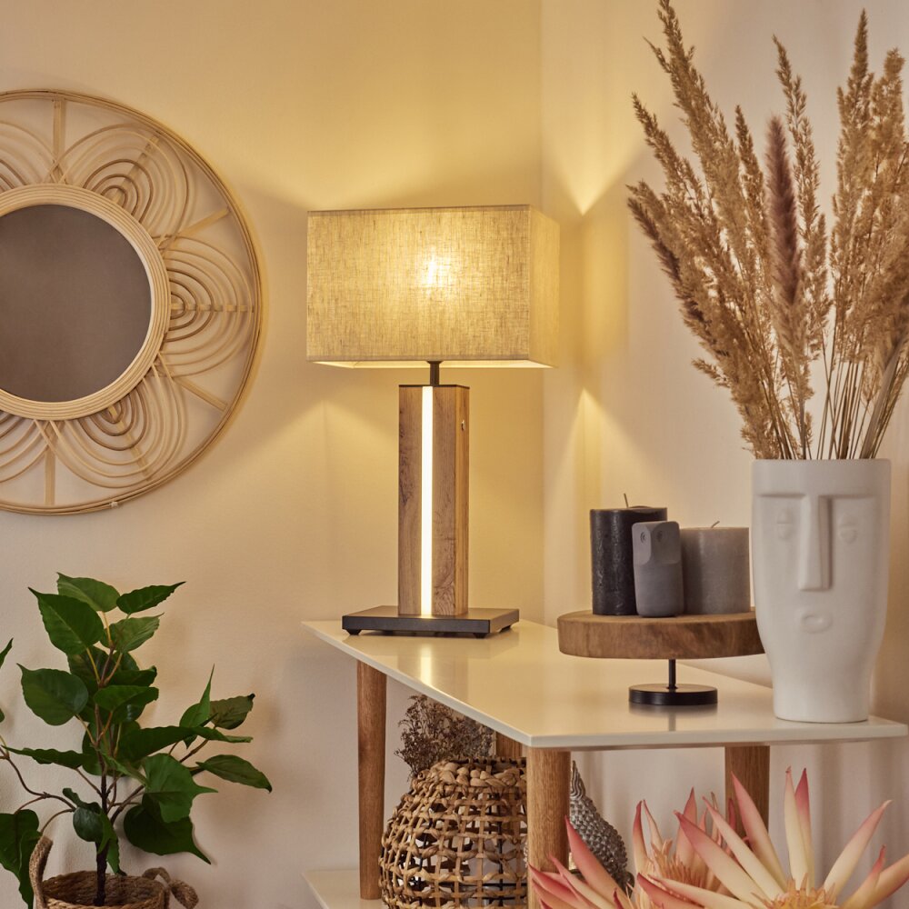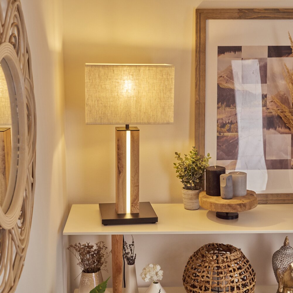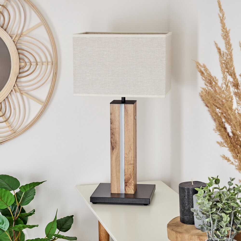 Lure Tafellamp Bruin, houtlook, Zwart, 1-licht