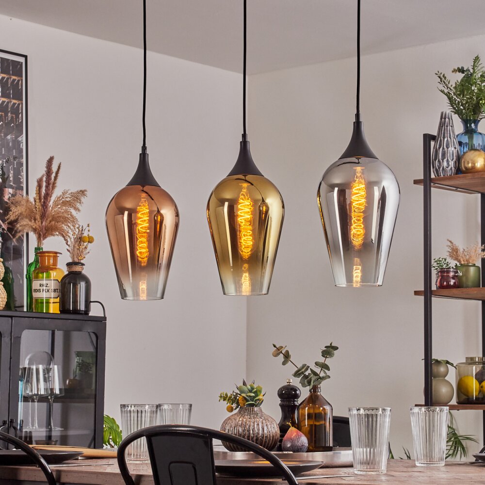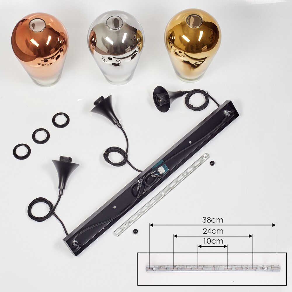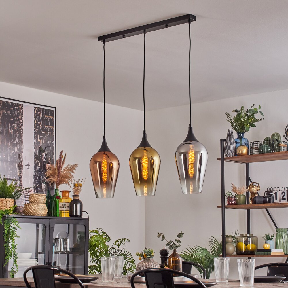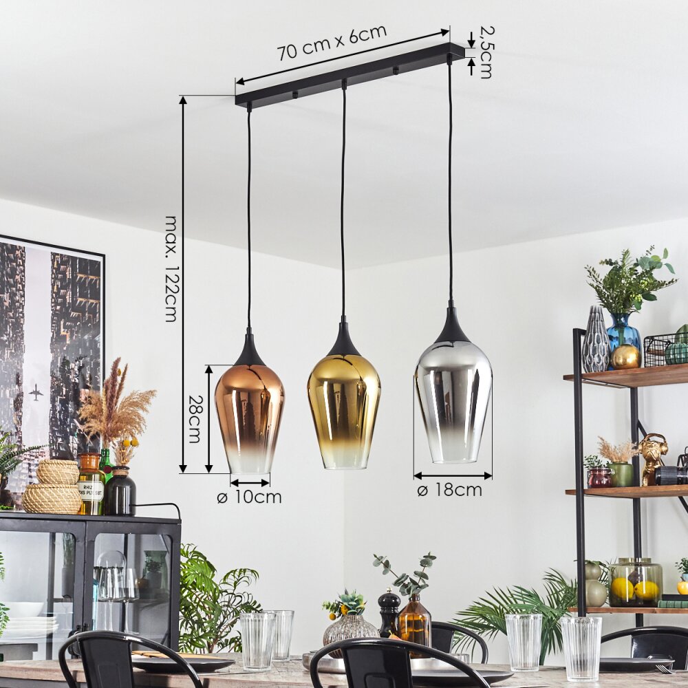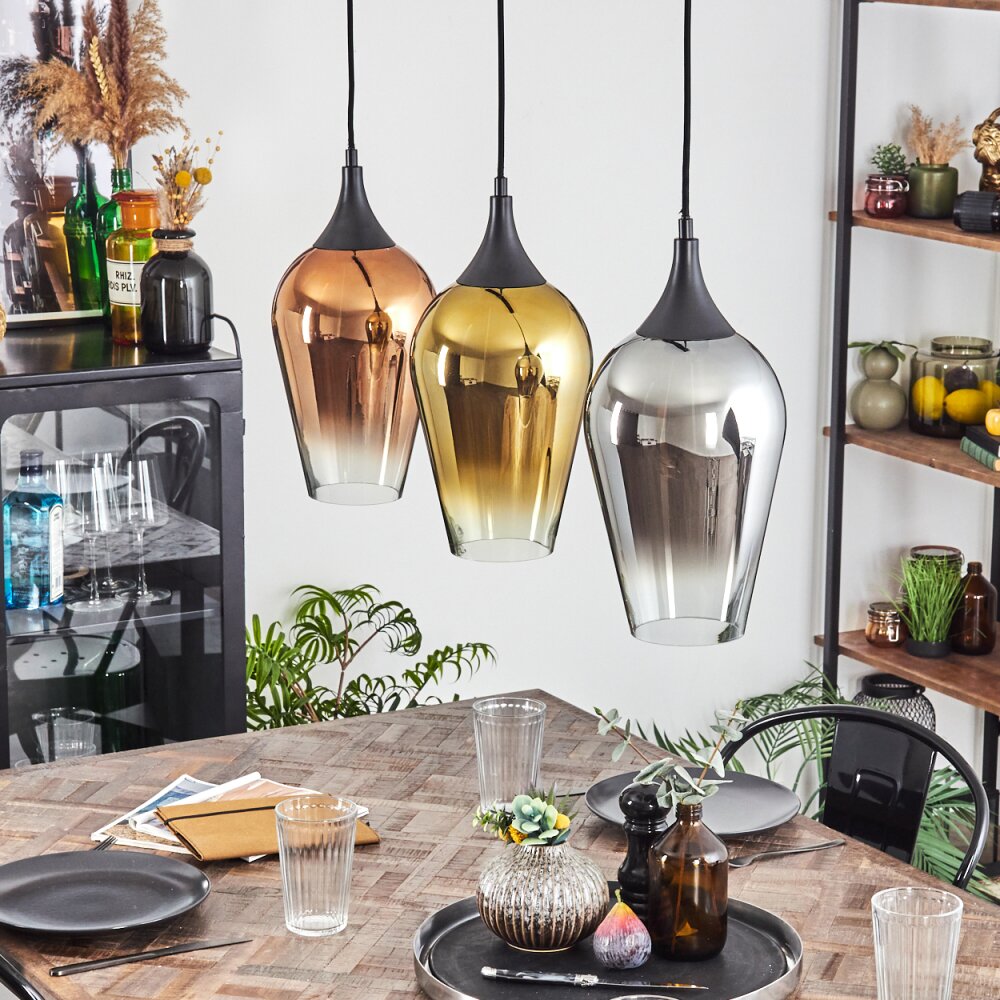 Ladrongueira Hanglamp Chroom, Goud, Duidelijk, Koperkleurig, Rookkleurig, 3-lichts