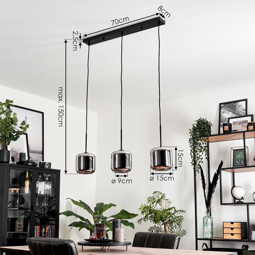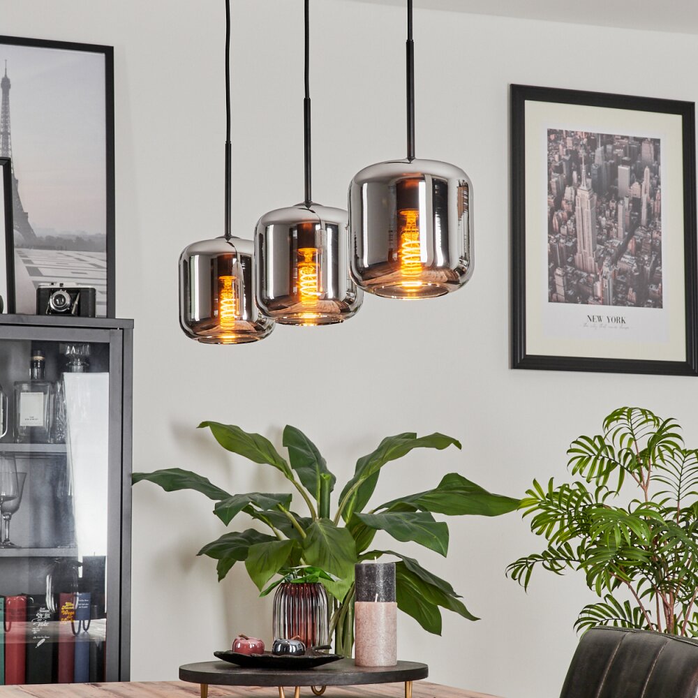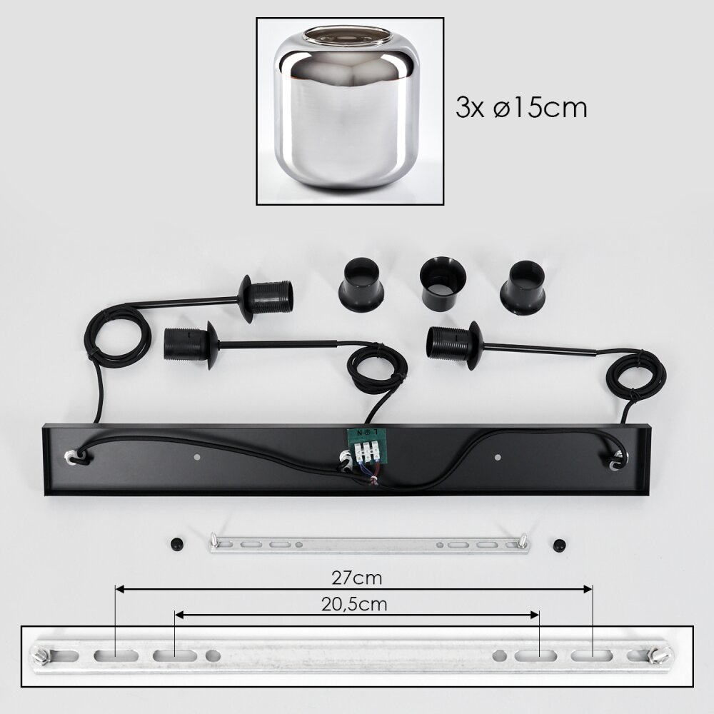 Lauden Hanger Glas 15 cm Chroom, Rookkleurig, 3-lichts