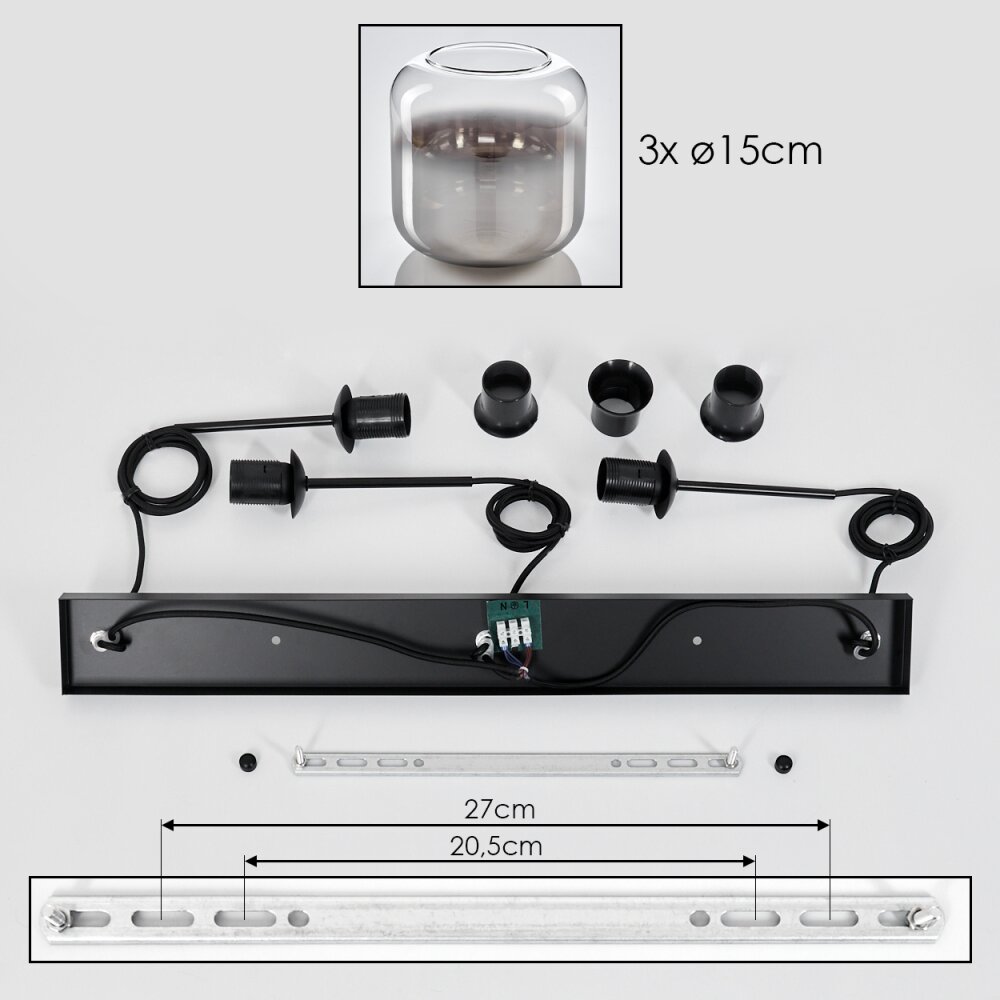 Lauden Hanger Glas 15 cm Duidelijk, Rookkleurig, 3-lichts