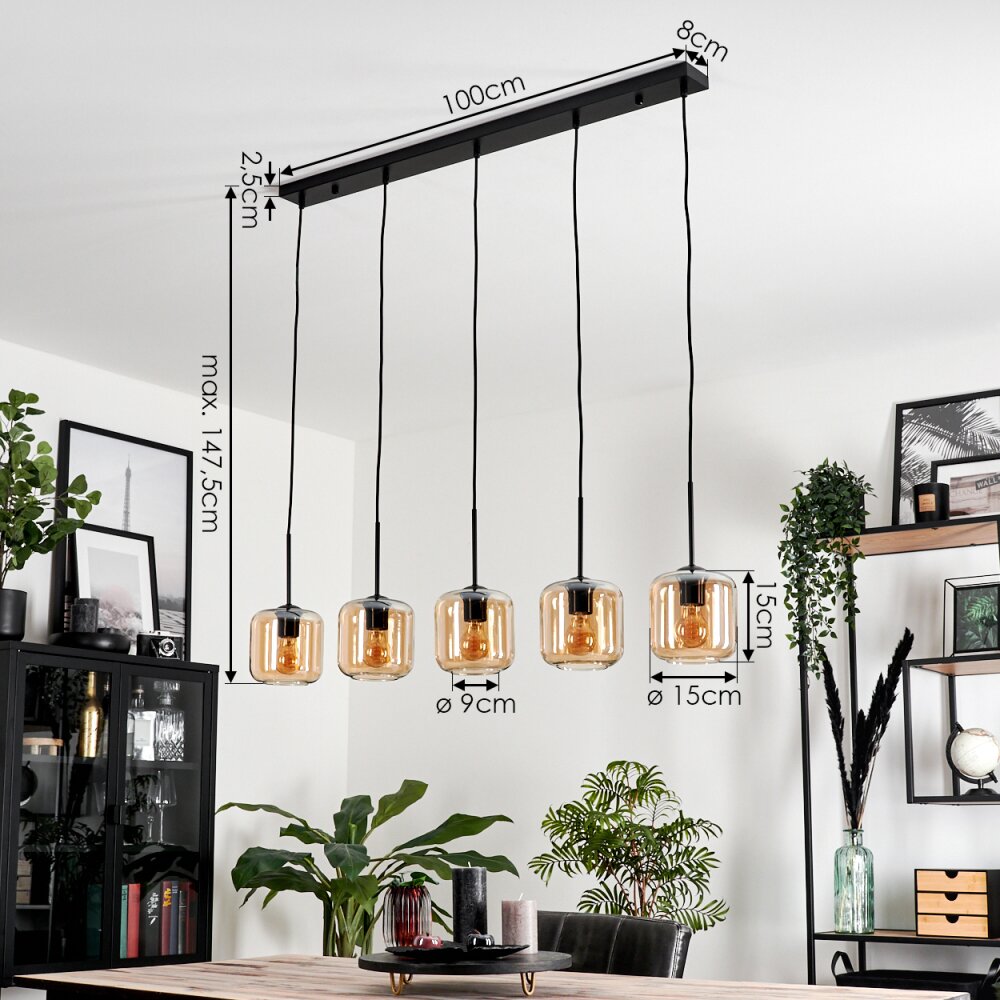 Lauden Hanger Glas 15 cm Amber, 5-lichts