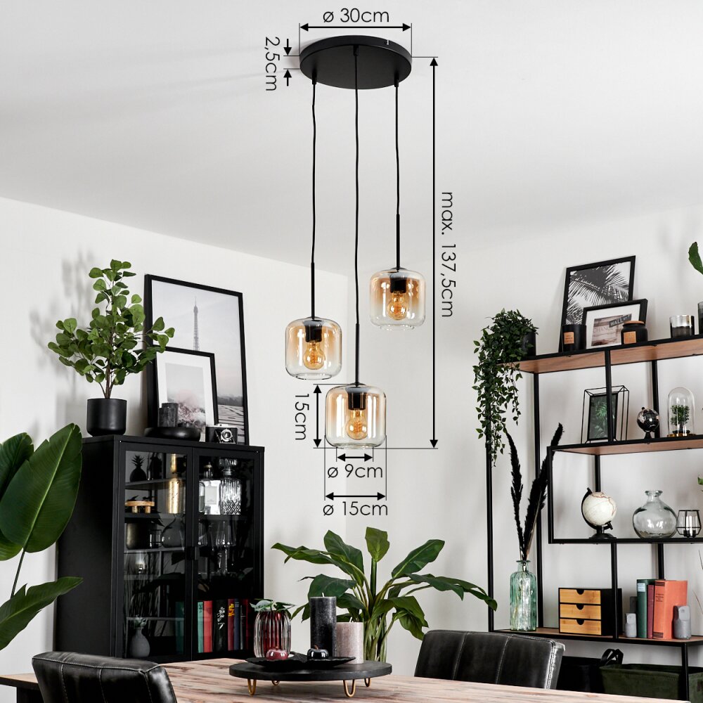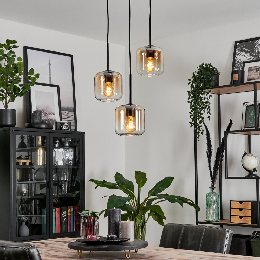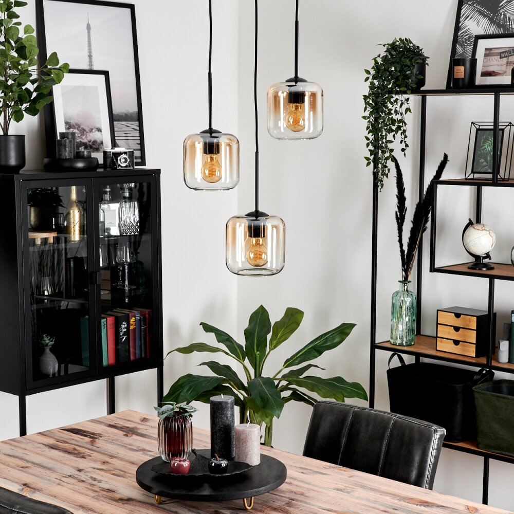 Lauden Hanger Glas 15 cm Amber, Duidelijk, 3-lichts
