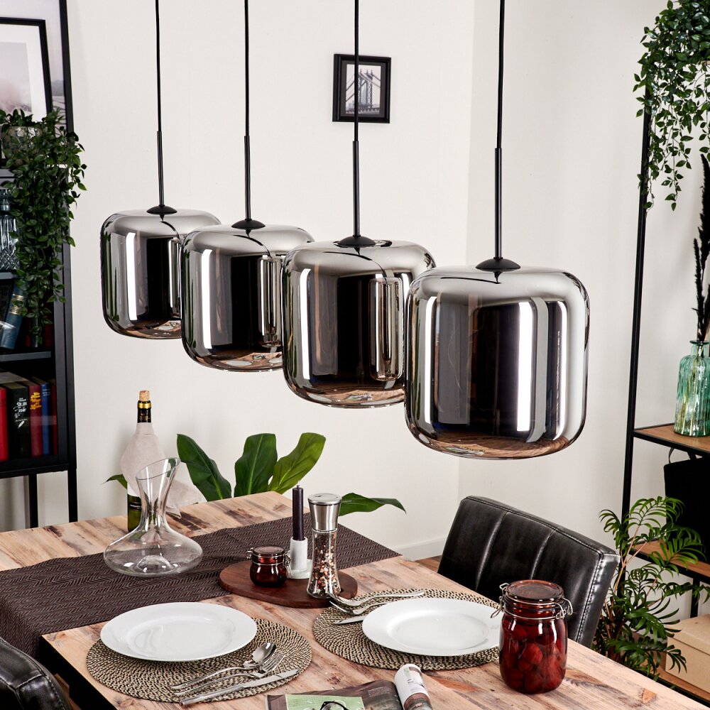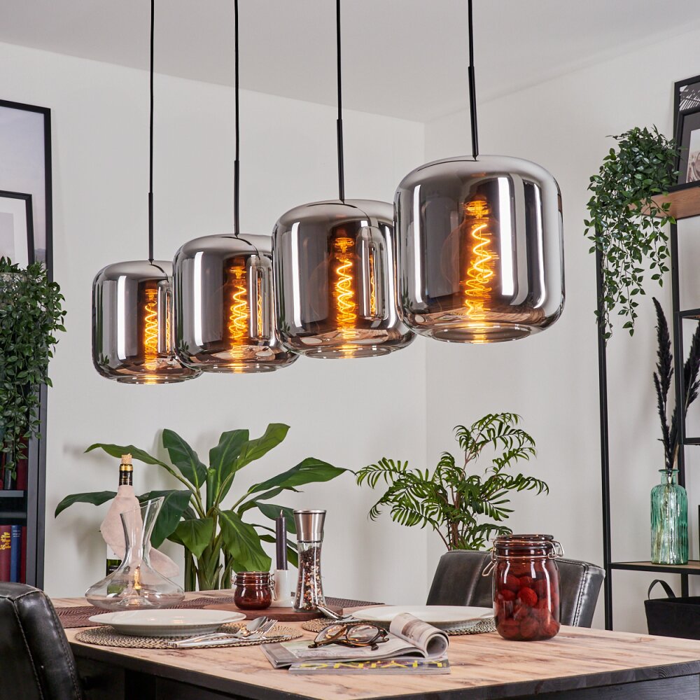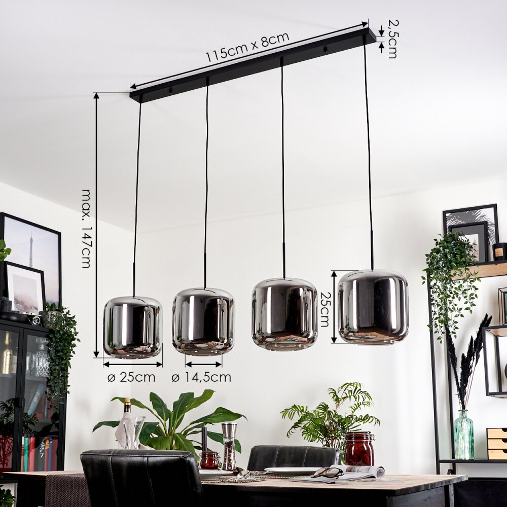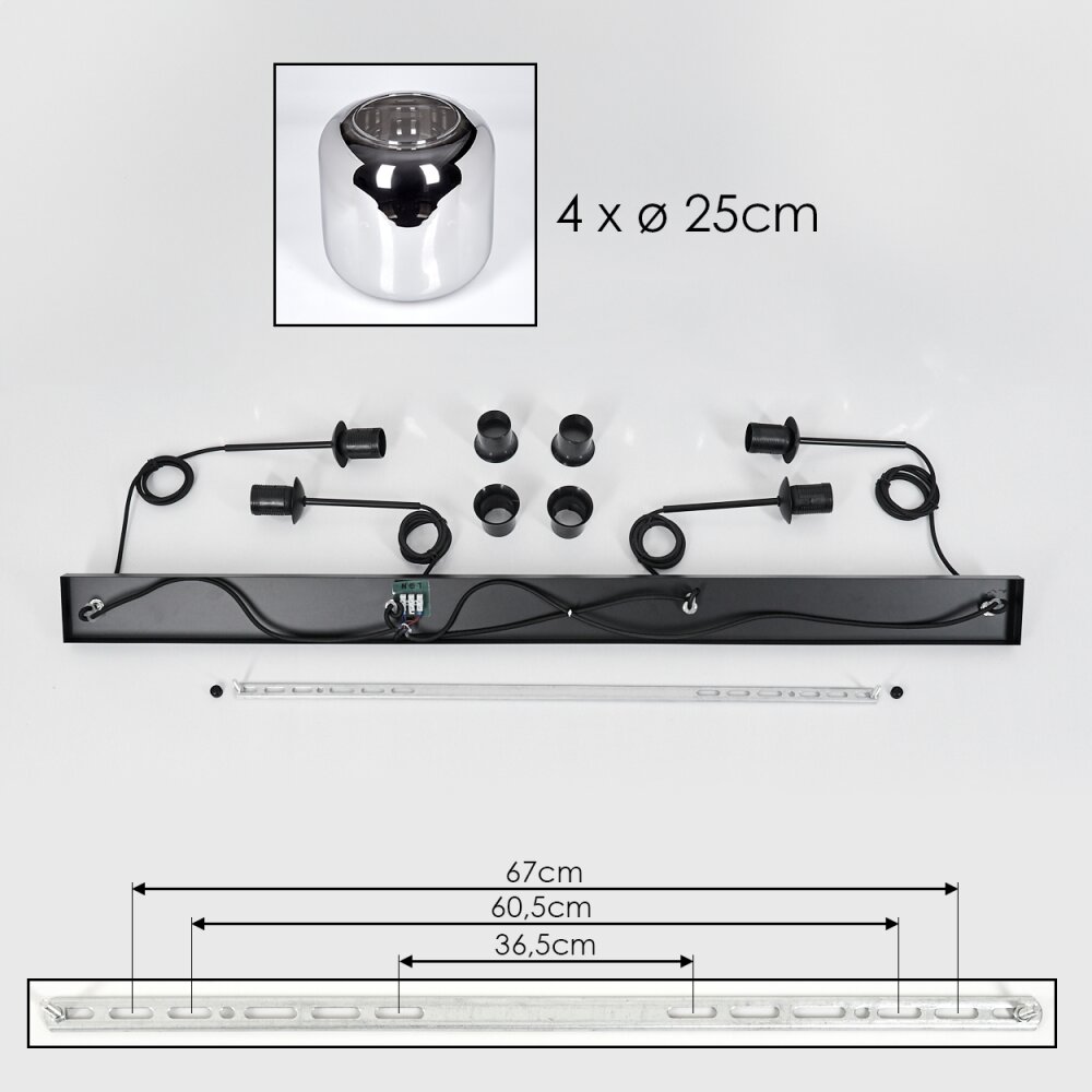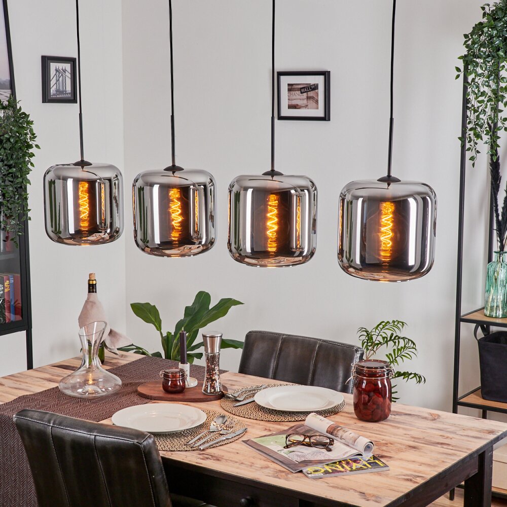 Lauden Hanger - Glas Chroom, Rookkleurig, 4-lichts