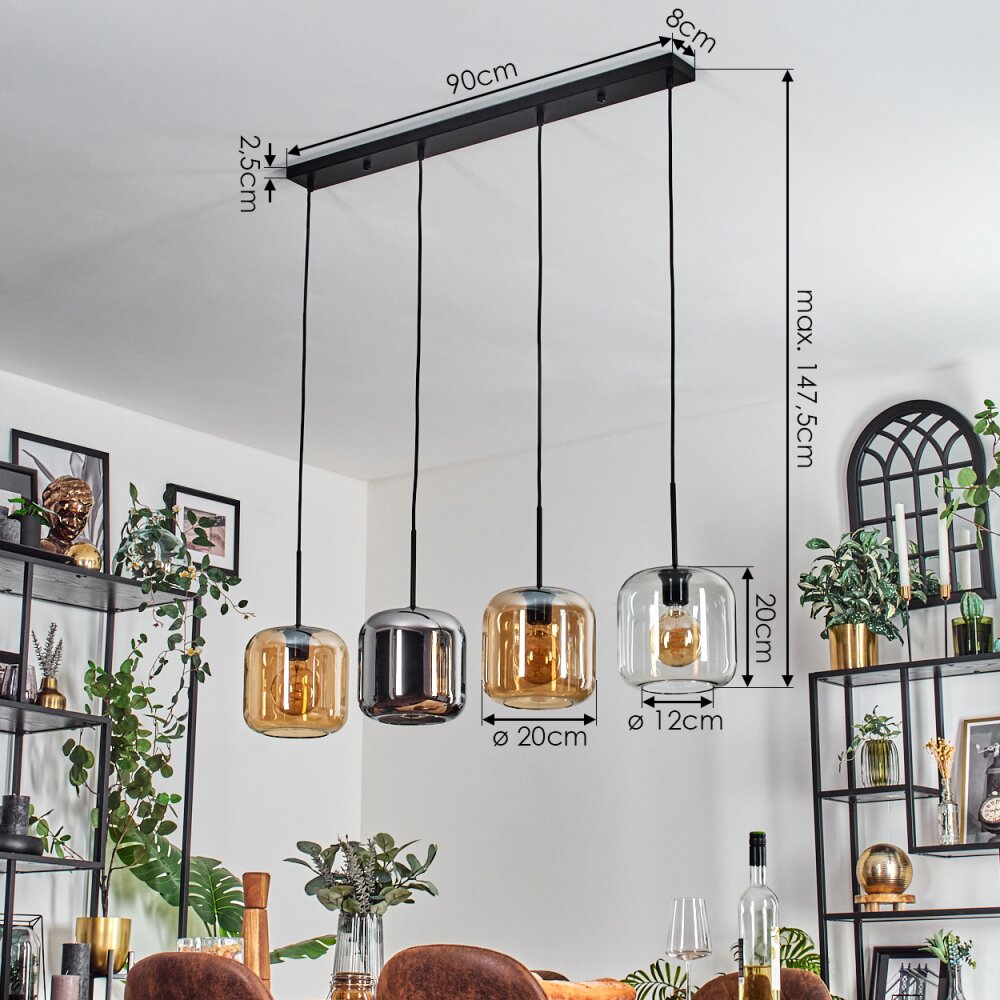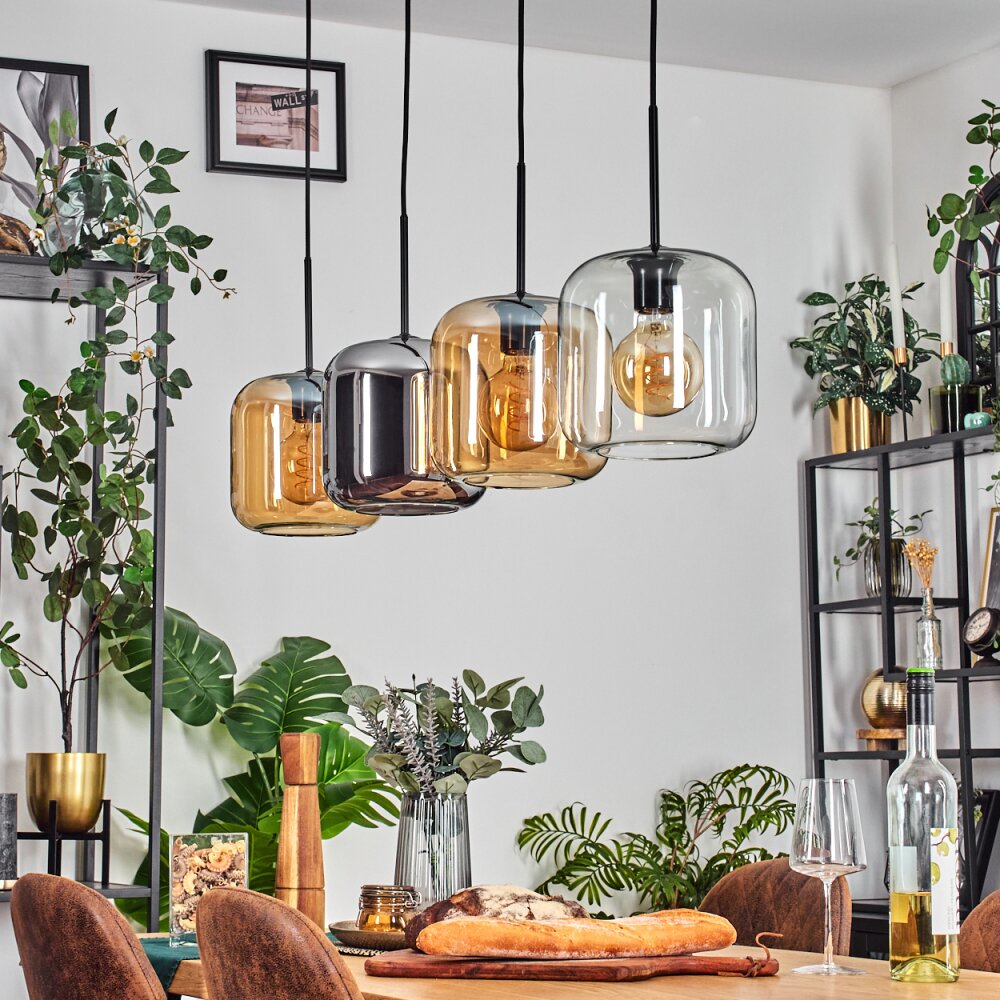 Lauden Hanglamp Amber, Chroom, Duidelijk, 4-lichts