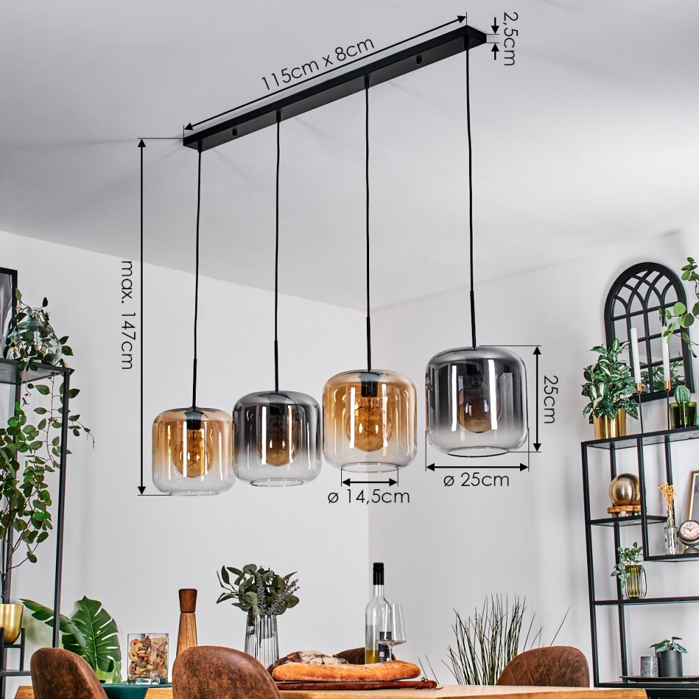 Lauden Hanglamp Amber, Duidelijk, Rookkleurig, 4-lichts