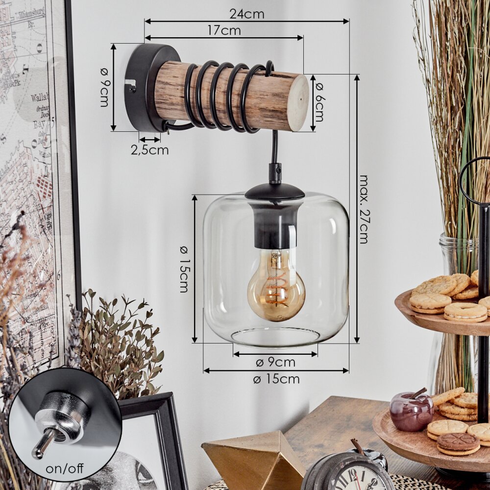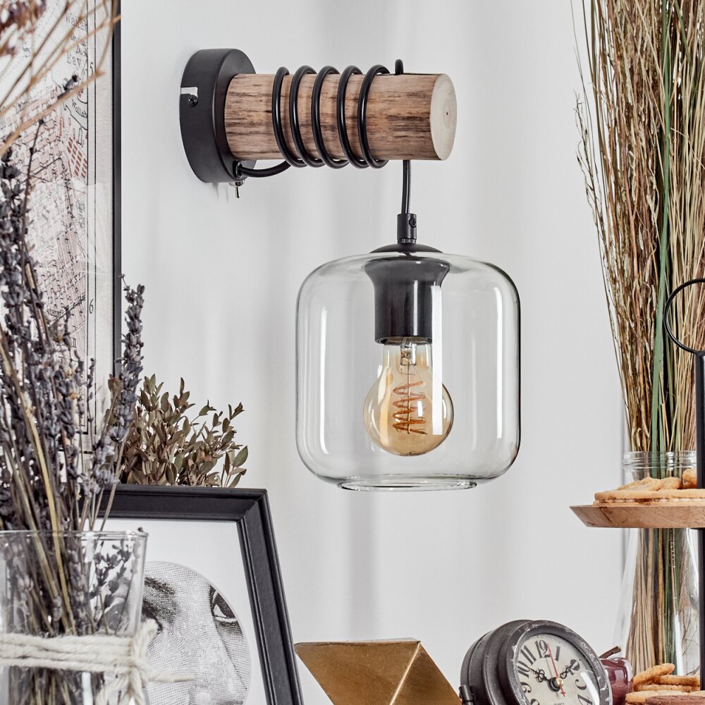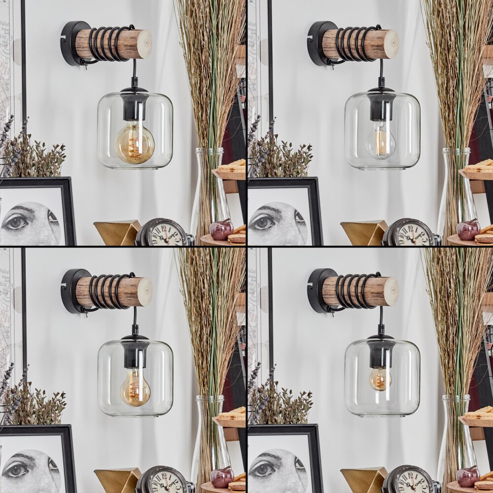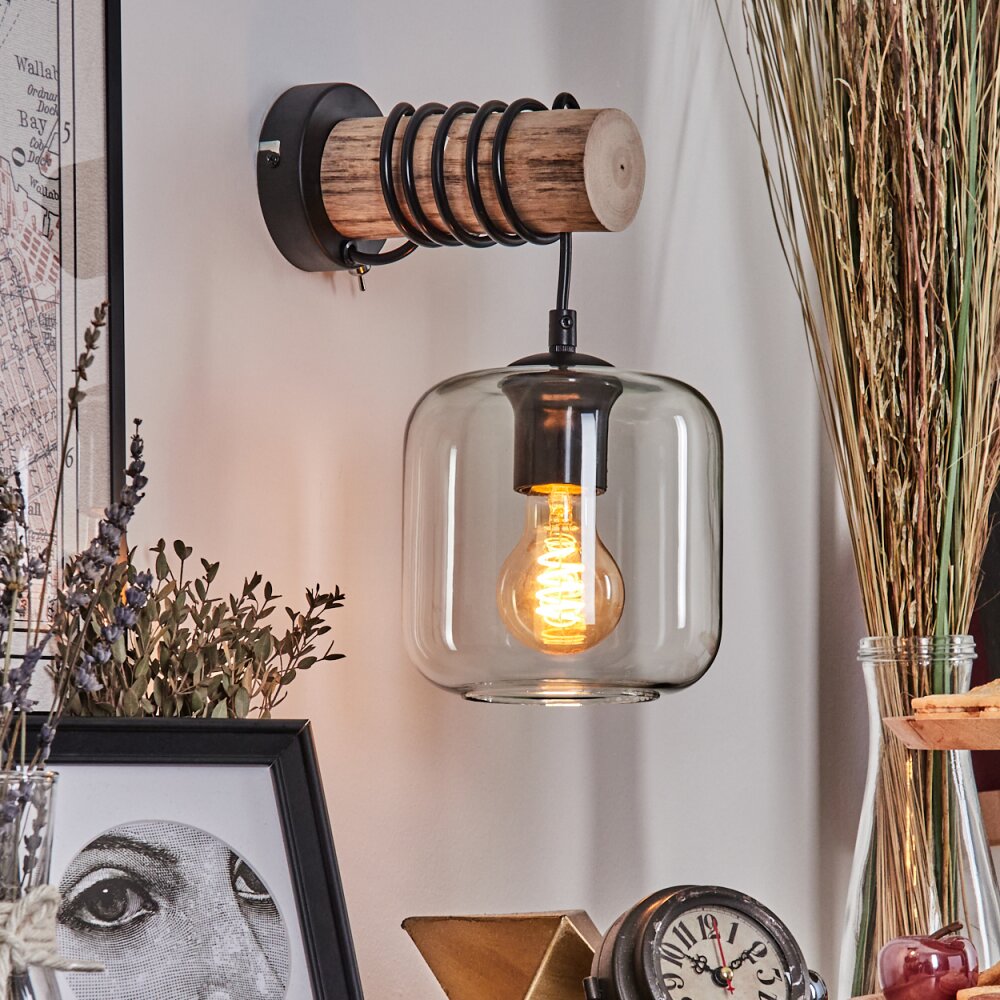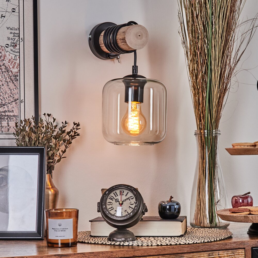 Lauden Muurlamp - Glas 15 cm Natuurlijke kleuren, Zwart, 1-licht