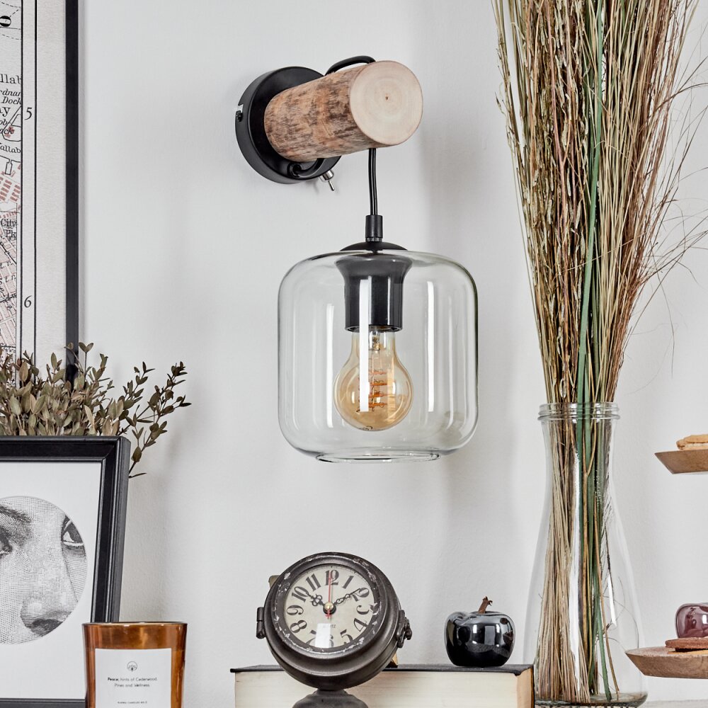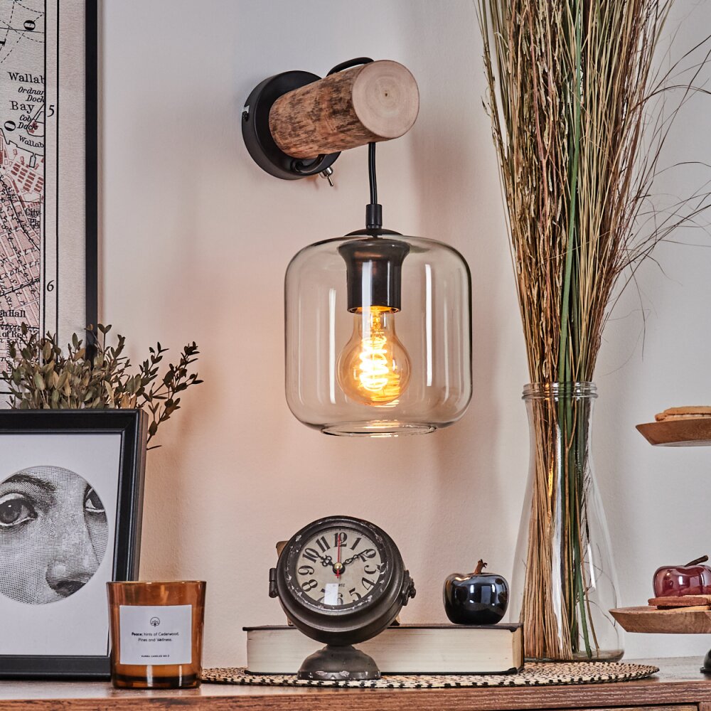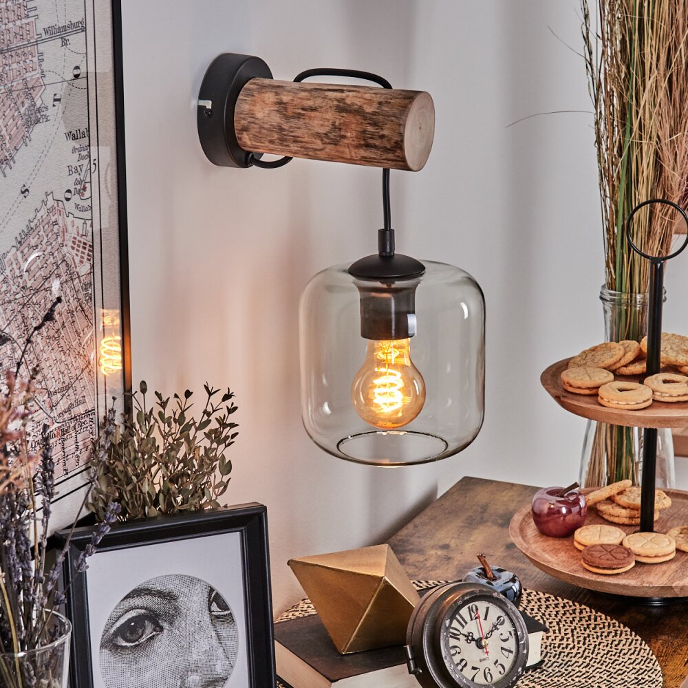 Lauden Muurlamp - Glas 15 cm Natuurlijke kleuren, Zwart, 1-licht