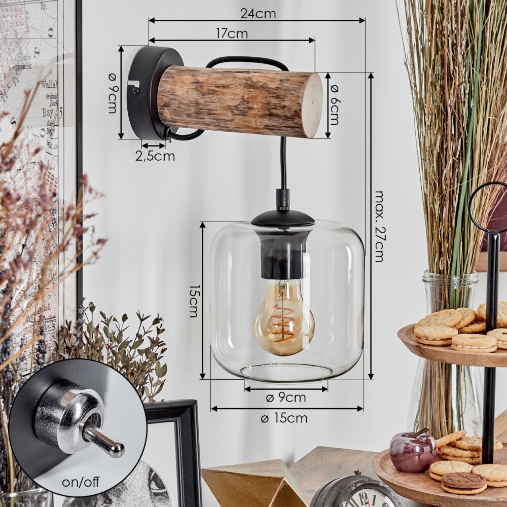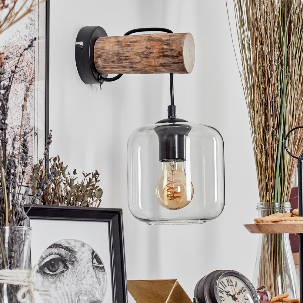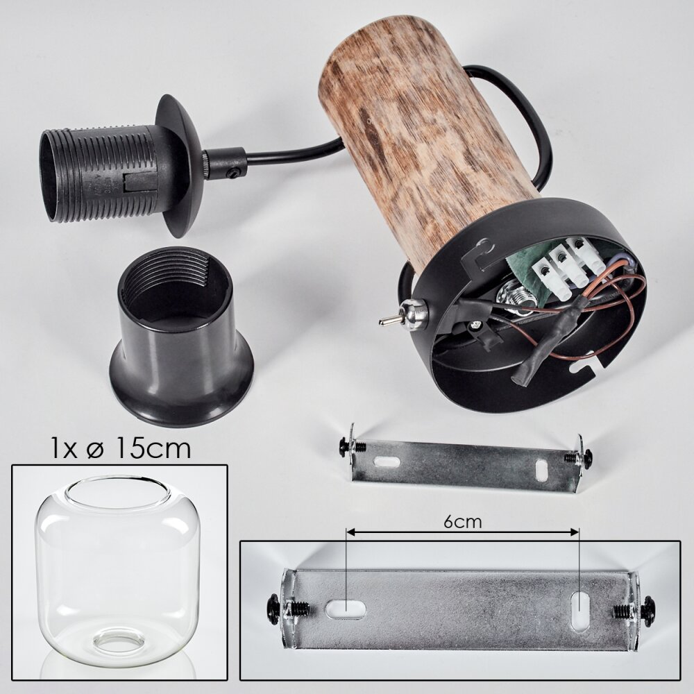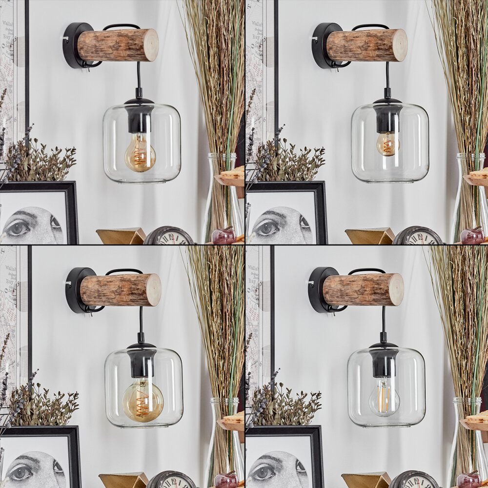 Lauden Muurlamp - Glas 15 cm Natuurlijke kleuren, Zwart, 1-licht