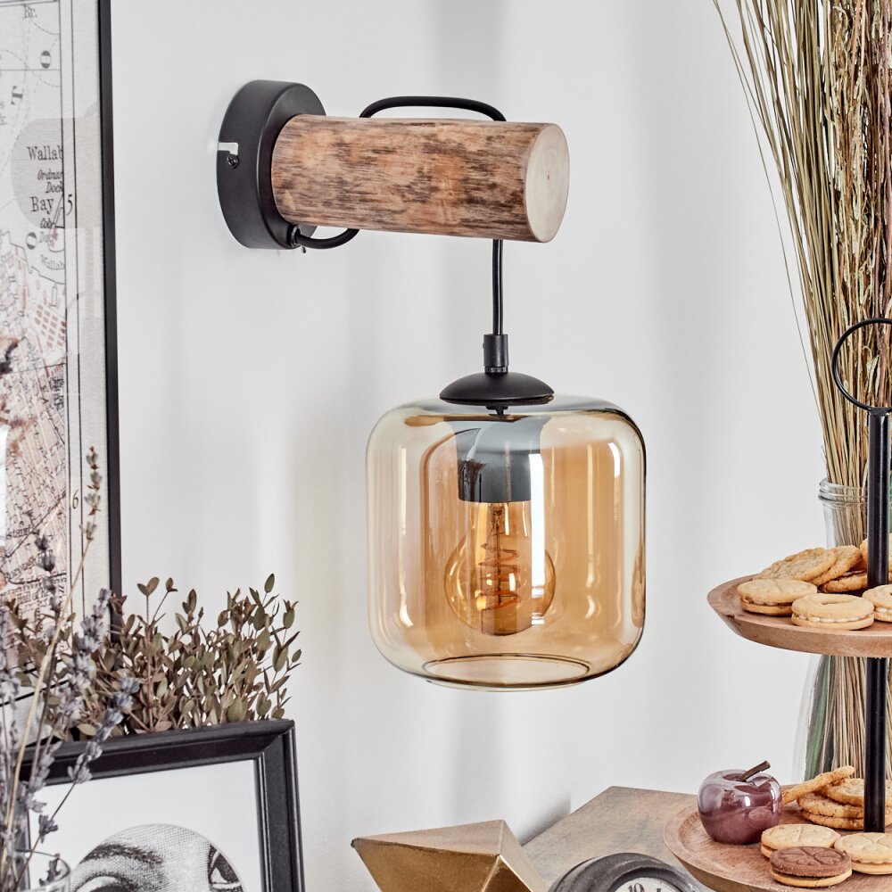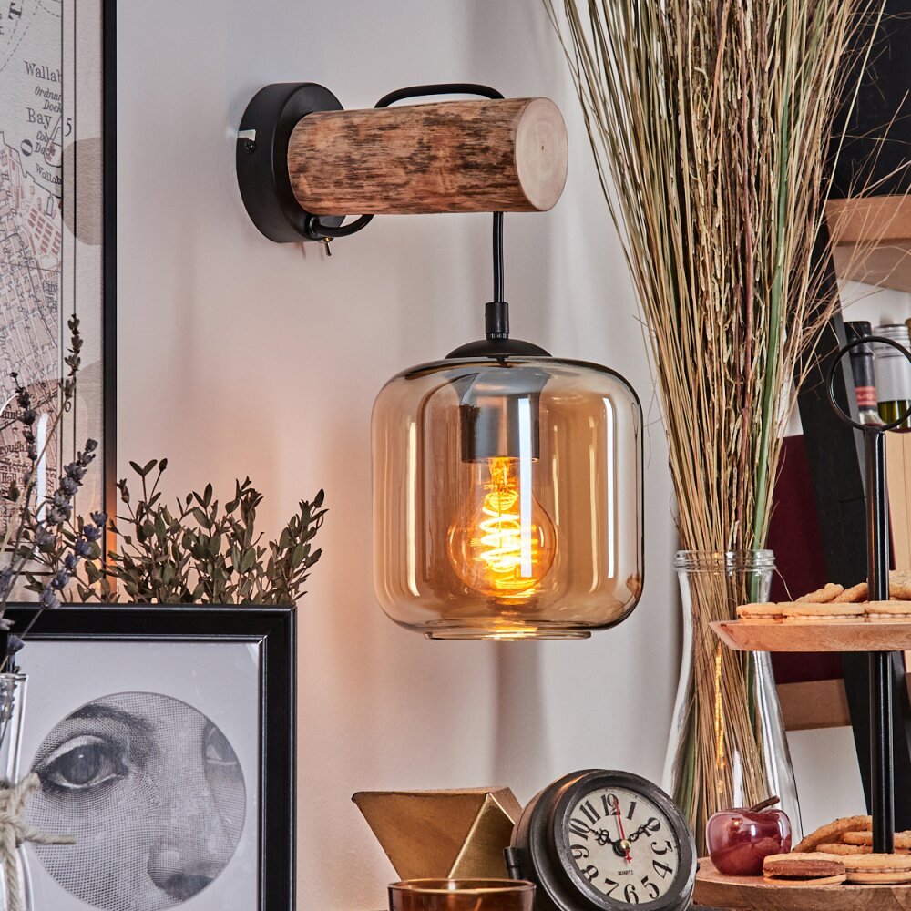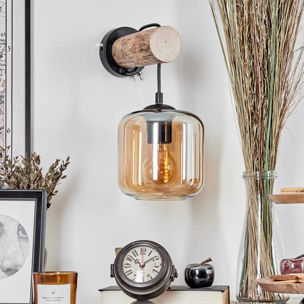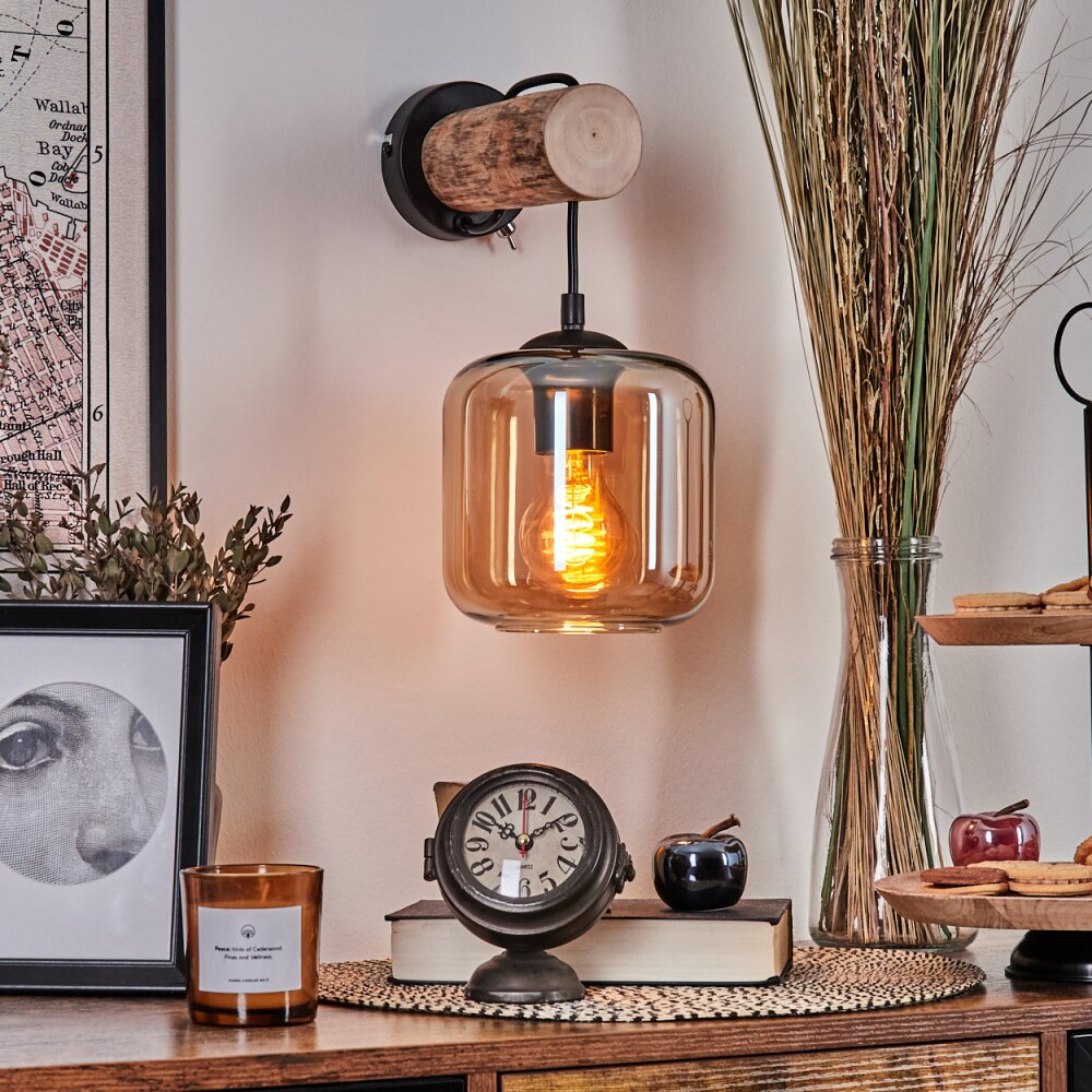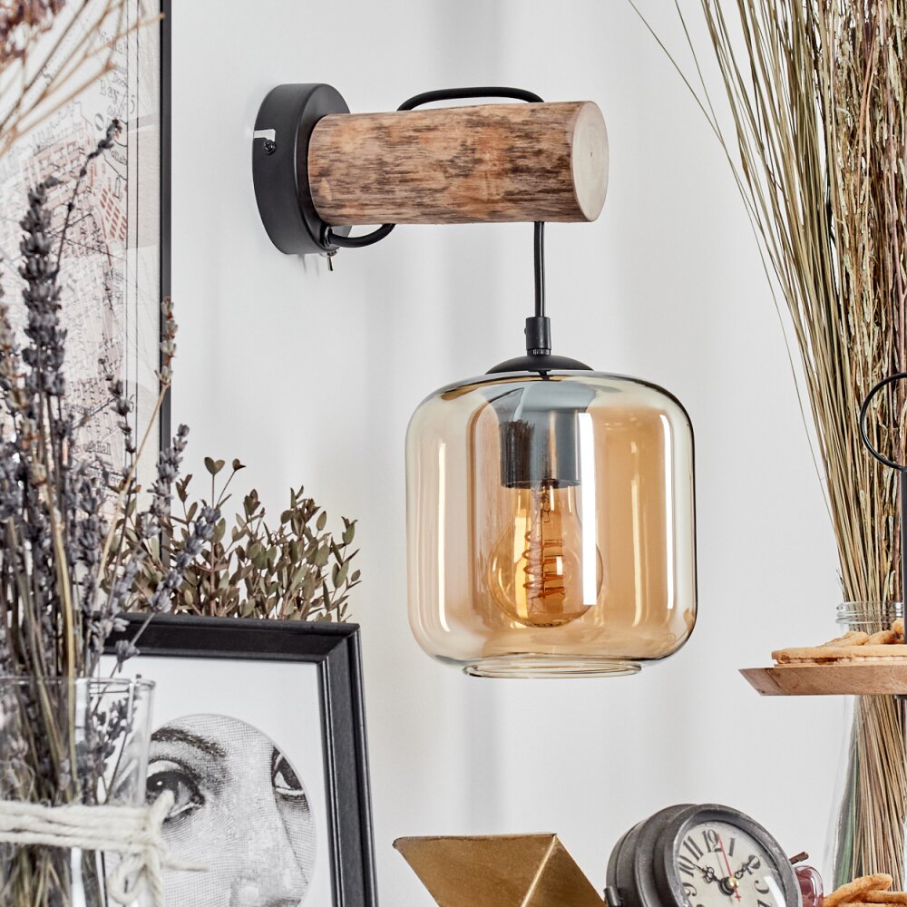 Lauden Muurlamp - Glas 15 cm Natuurlijke kleuren, Zwart, 1-licht