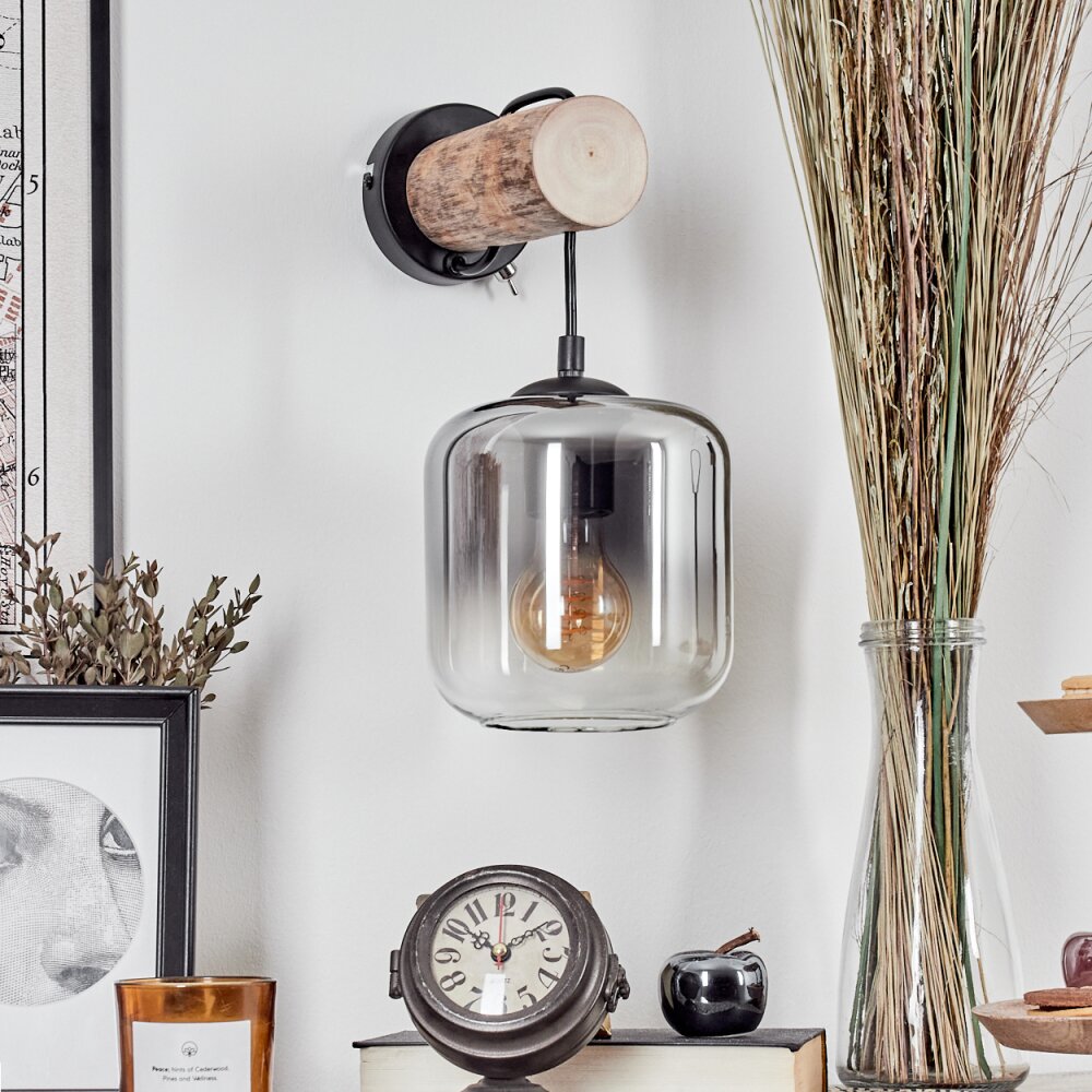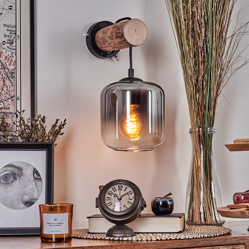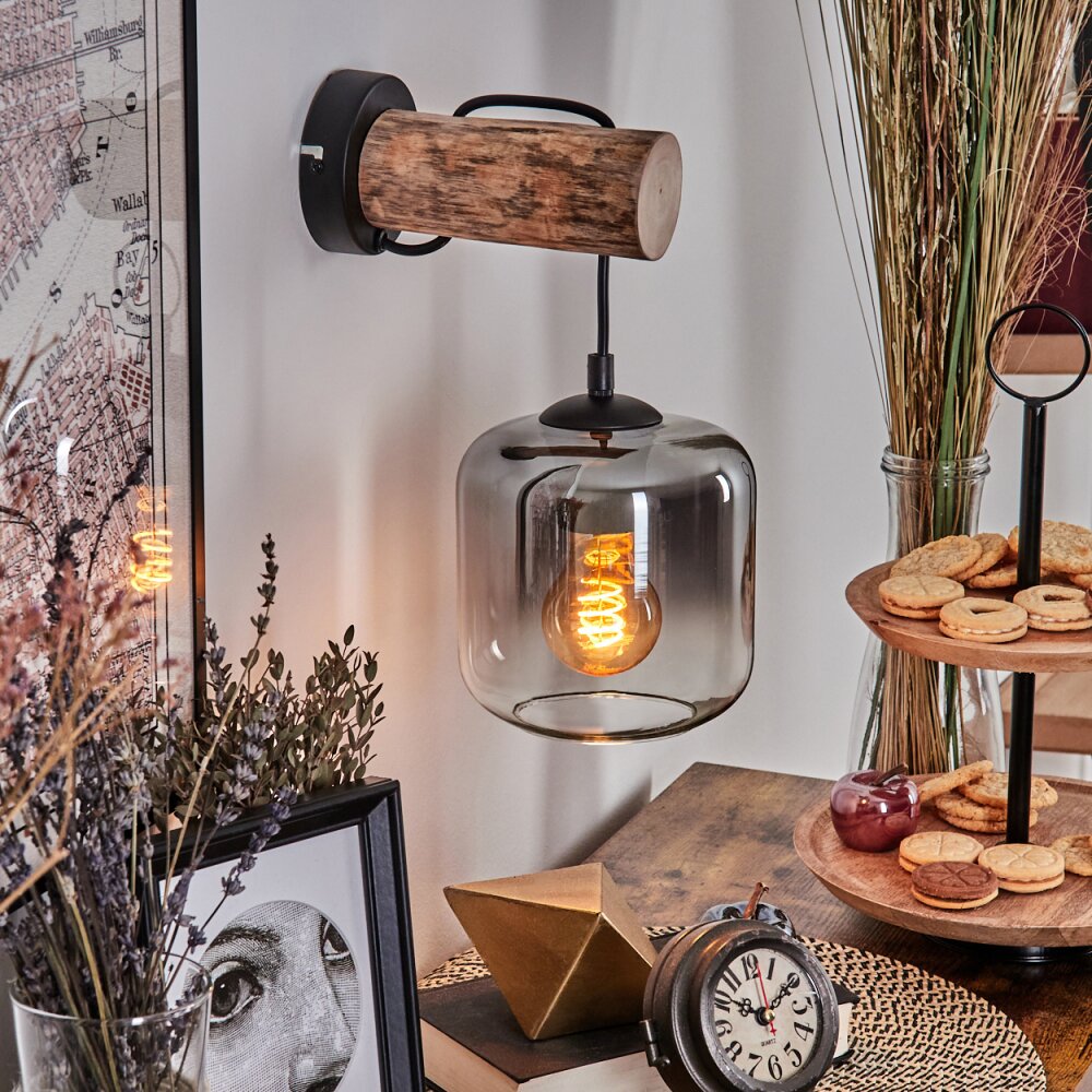 Lauden Muurlamp - Glas 15 cm Natuurlijke kleuren, Zwart, 1-licht