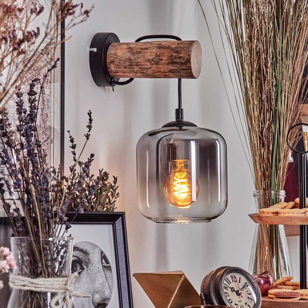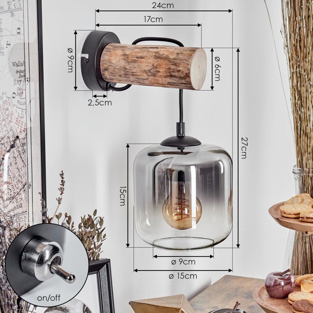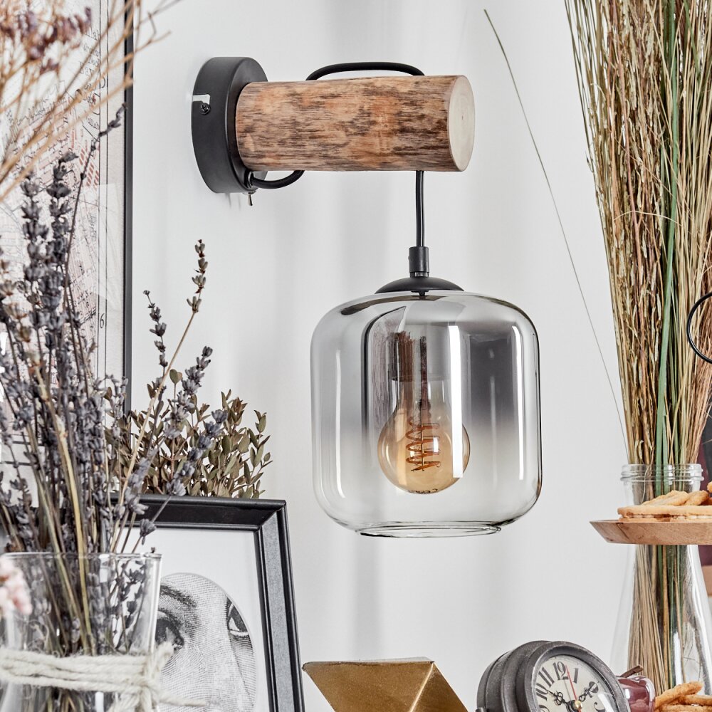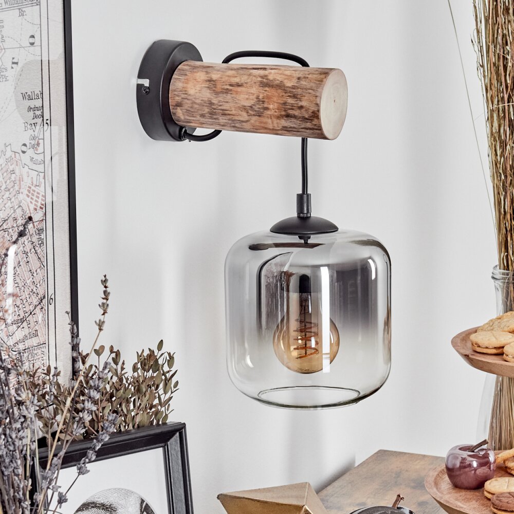 Lauden Muurlamp - Glas 15 cm Natuurlijke kleuren, Zwart, 1-licht