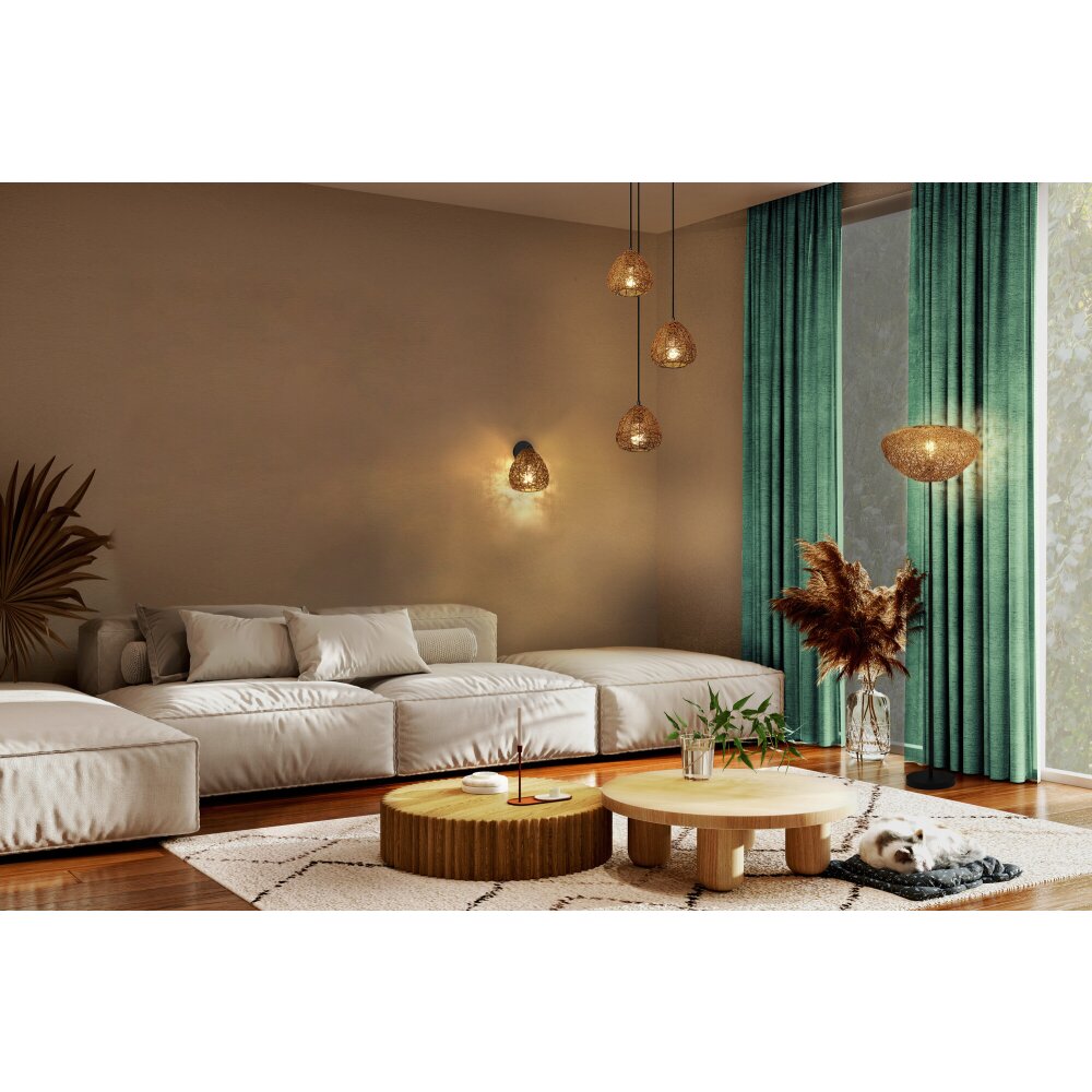 Minor Plafondlamp, Kogellampje Groen, houtlook, Zwart, 1-licht