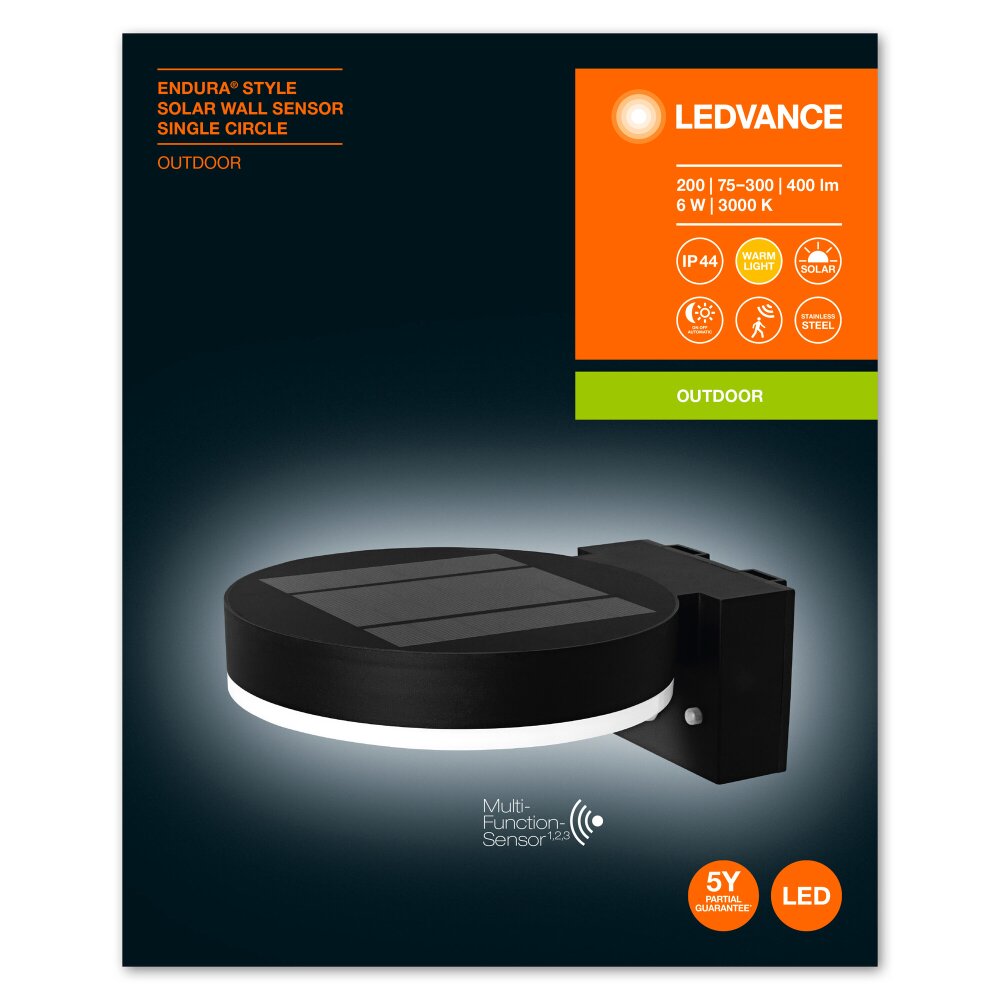 LEDVANCE ENDURA® Solarlamp Zwart, 1-licht, Bewegingsmelder