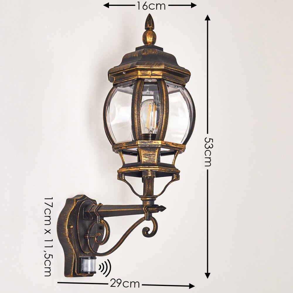 Lentua Buiten muurverlichting Bruin, Goud, 1-licht, Bewegingsmelder