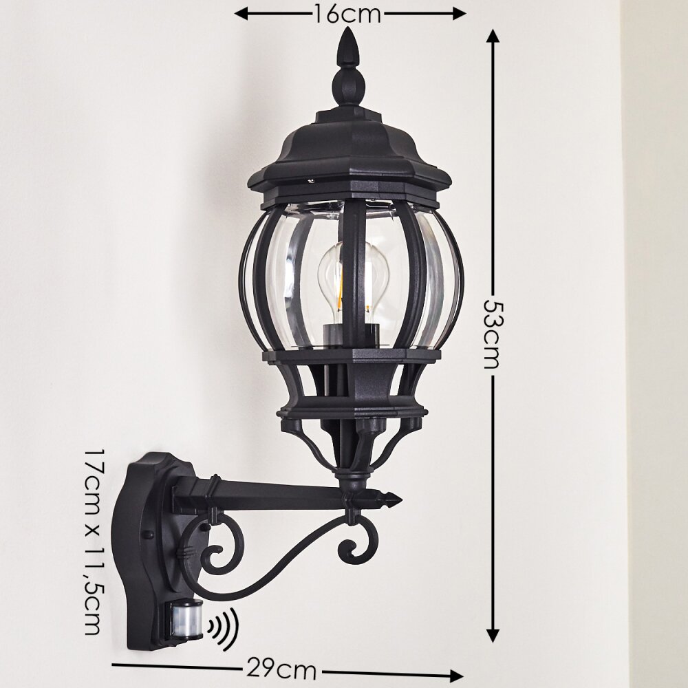 Lentua Buiten muurverlichting Zwart, 1-licht, Bewegingsmelder