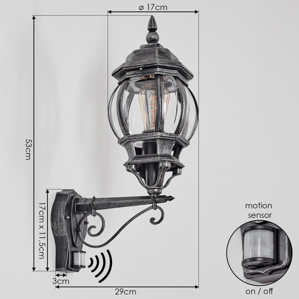 Lentua Wandlamp voor buiten, Wandlamp Zwart, Zilver, 1-licht, Bewegingsmelder