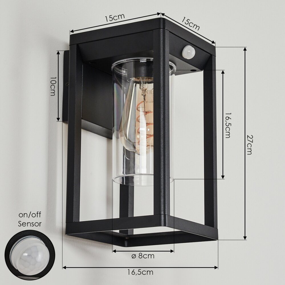 Leset Buiten muurverlichting Zwart, 1-licht, Bewegingsmelder