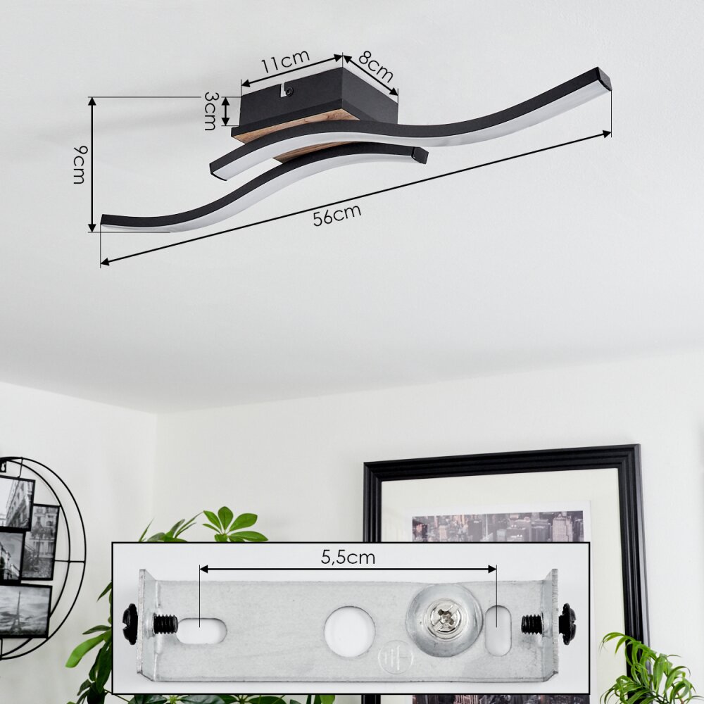 Letala Plafondlamp LED houtlook, 2-lichts