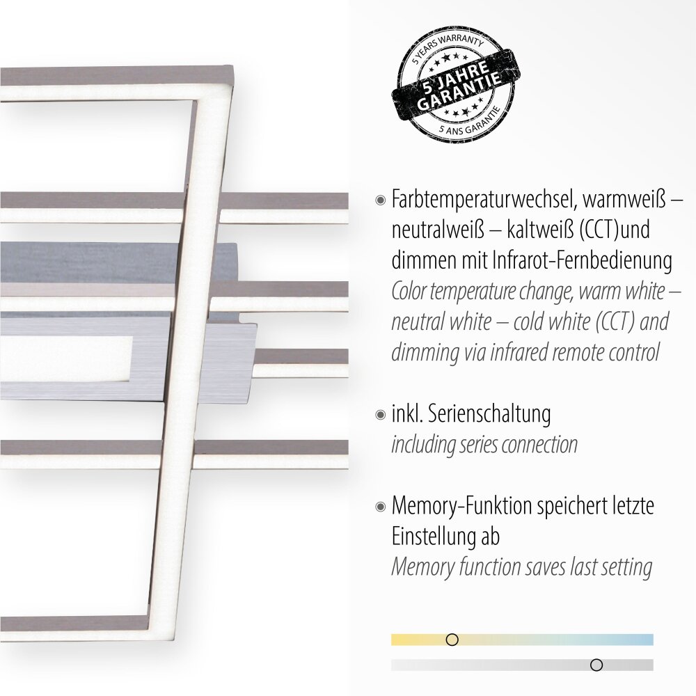 Leuchten-Direkt ASMIN Plafondlamp LED Staal geborsteld, 1-licht, Afstandsbediening