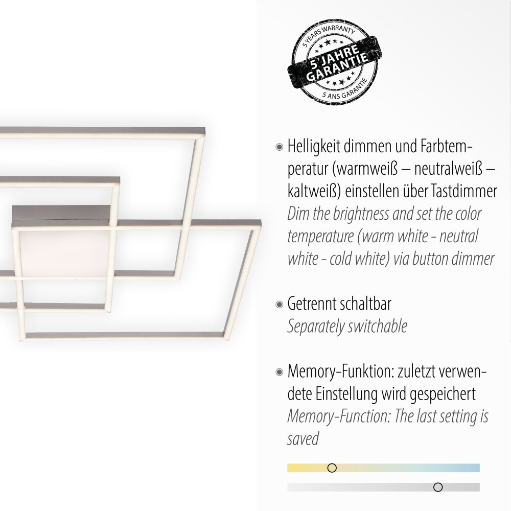 Leuchten-Direkt ASMIN Plafondlamp LED Staal geborsteld, 3-lichts, Afstandsbediening