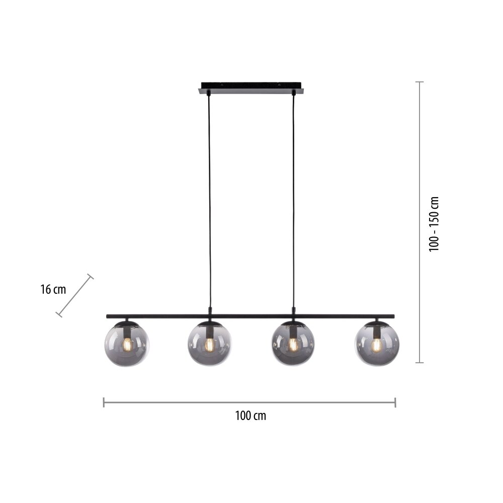 Tador Hanglamp, Kogellampje, Hanglamp Zwart, 4-lichts