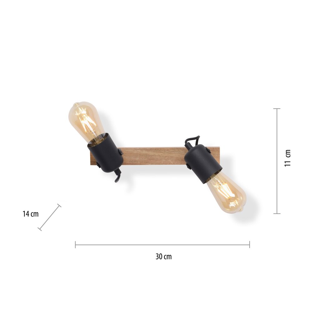 Tina Muurlamp Chroom, Hout licht, Zwart, 1-licht