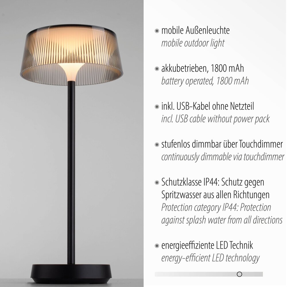 Amien Buiten tafellamp, Tafellamp LED Zwart, Zilver, 1-licht