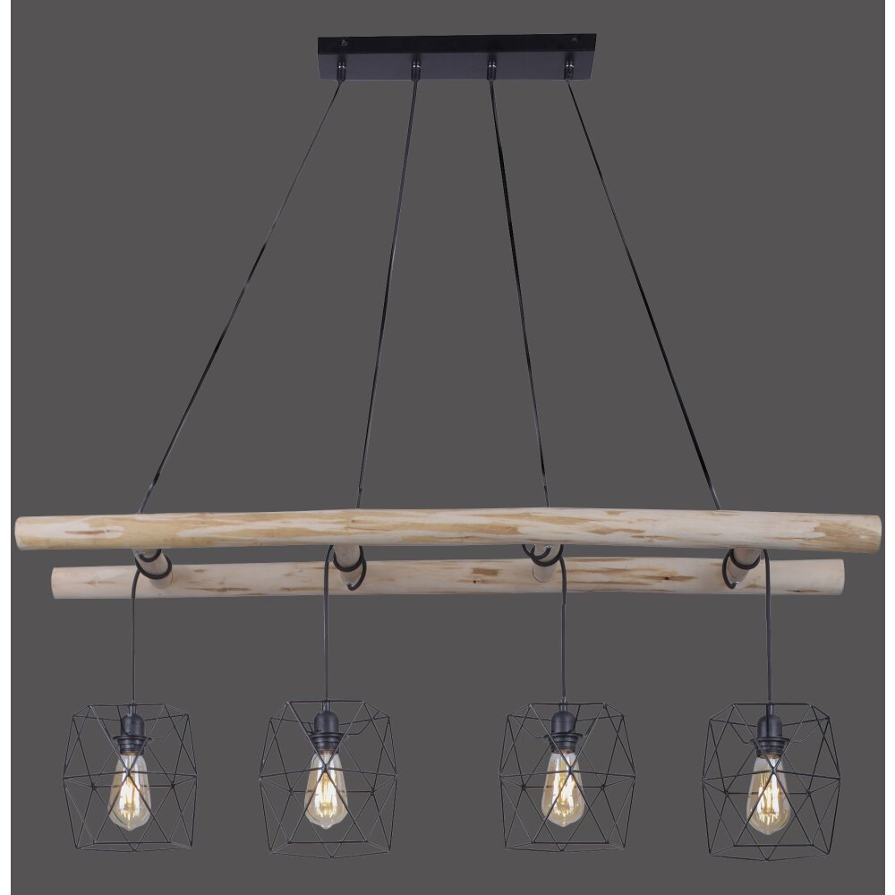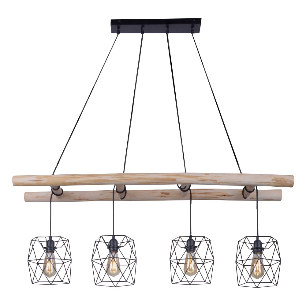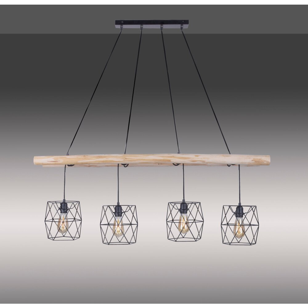 Leuchten-Direkt EDGAR Hanglamp Hout licht, Zwart, 4-lichts