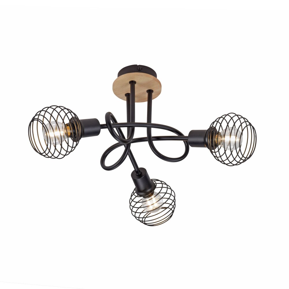 Venok Plafondlamp, Kogellampje houtlook, Zwart, 2-lichts