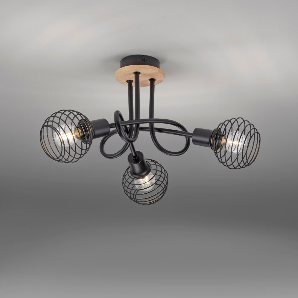 Leuchten-Direkt EUGEN Plafondlamp Natuurlijke kleuren, Zwart, 3-lichts