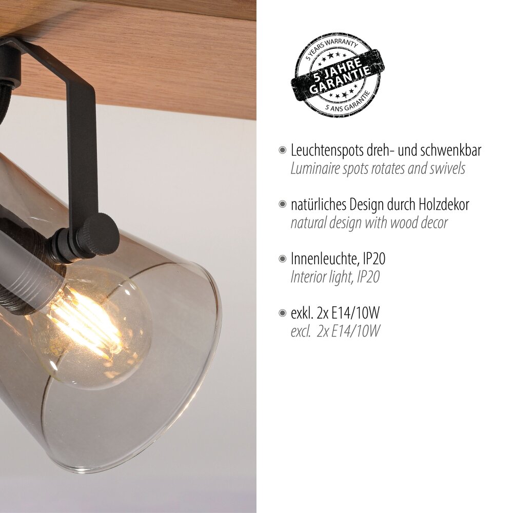 Leuchten-Direkt GREEN LANGSTRÖM Plafondlamp Natuurlijke kleuren, Zwart, 2-lichts