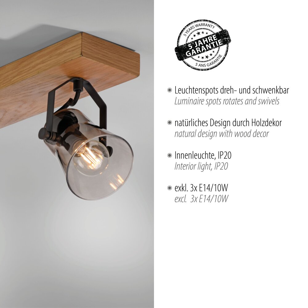 Leuchten-Direkt GREEN LANGSTRÖM Plafondlamp Natuurlijke kleuren, Zwart, 3-lichts