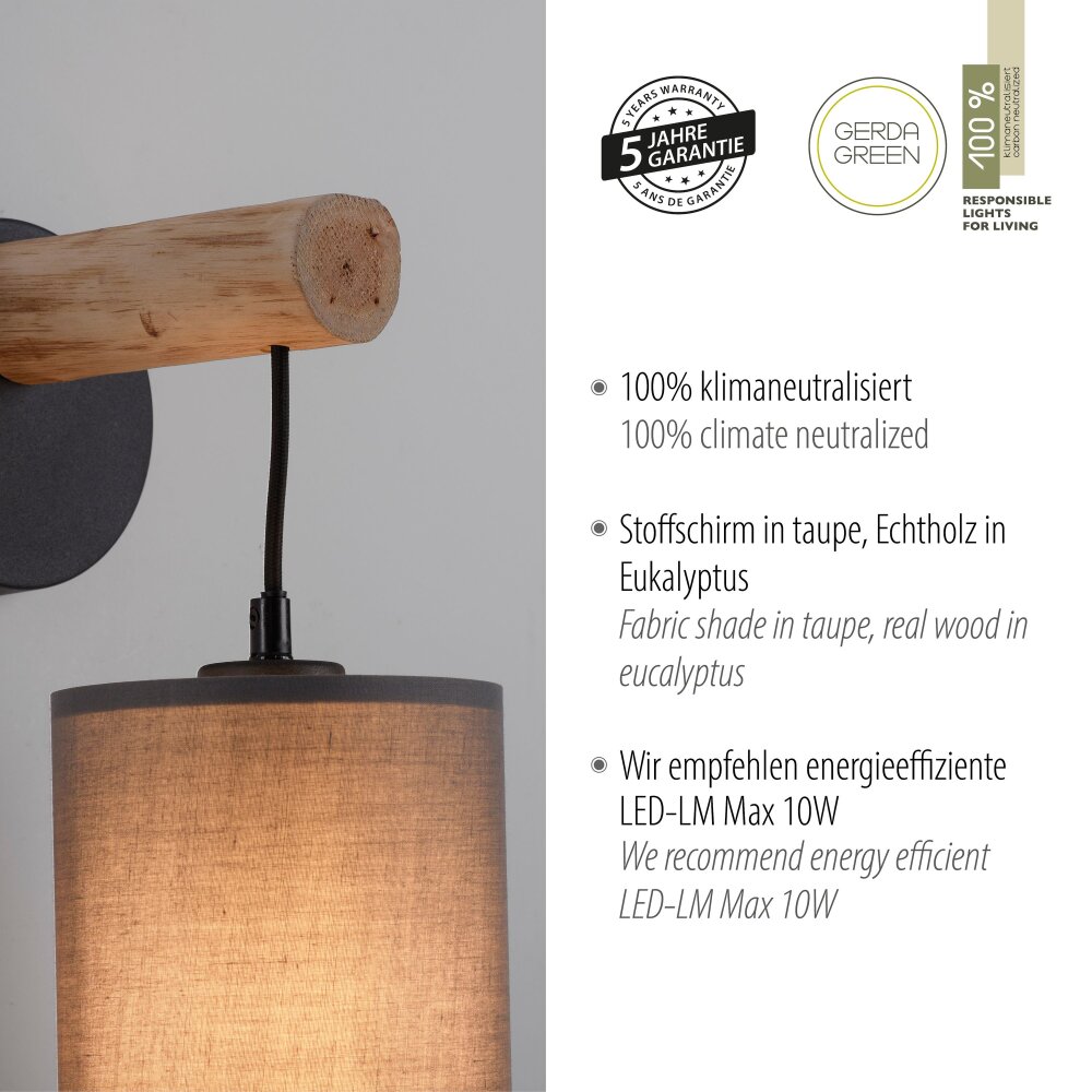 Leuchten-Direkt GREEN TRIBU Muurlamp Natuurlijke kleuren, Zwart, 1-licht