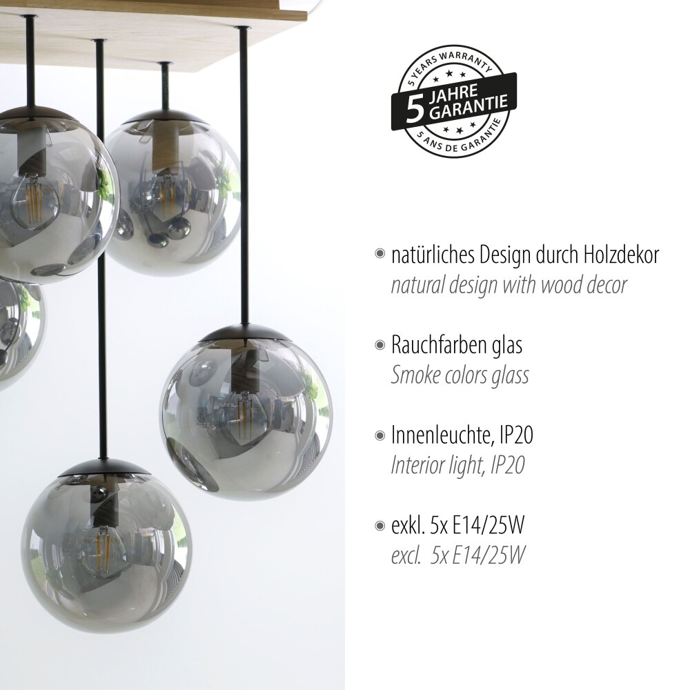 Leuchten-Direkt GREEN WIDOW Plafondlamp Natuurlijke kleuren, Zwart, 5-lichts