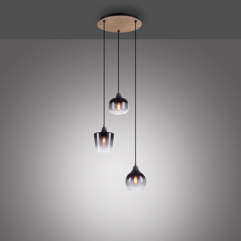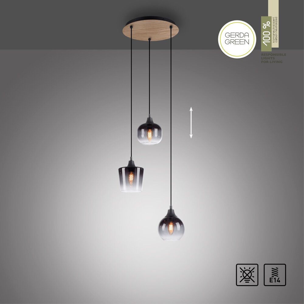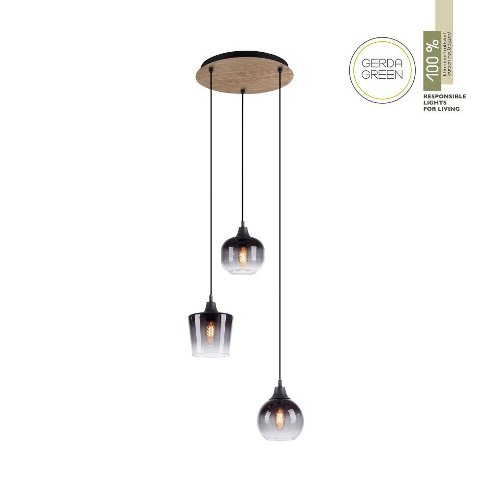 Leuchten-Direkt GREEN ZEA Hanglamp Natuurlijke kleuren, Zwart, 3-lichts