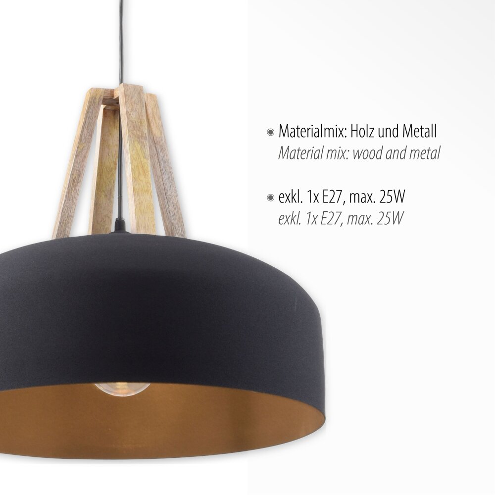 Leuchten-Direkt HAREA Hanger Natuurlijke kleuren, Zwart, 1-licht