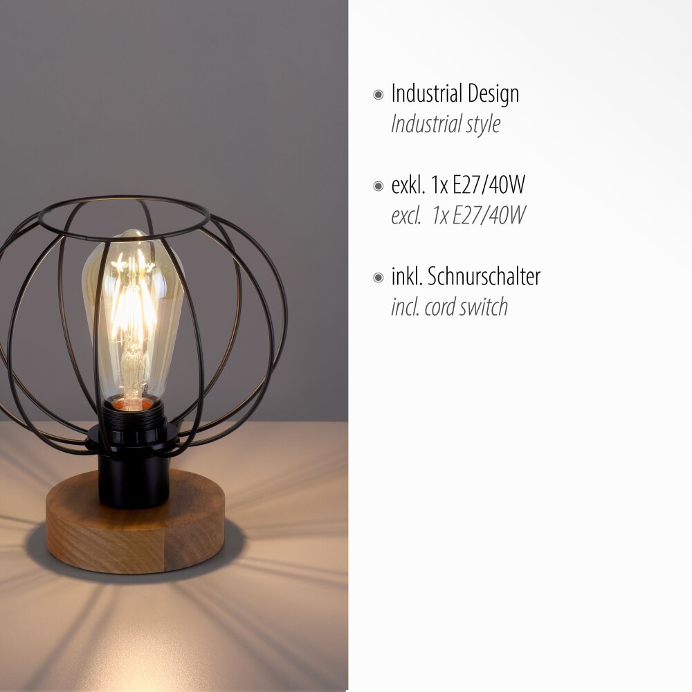 Leuchten-Direkt KASKA Tafellamp Hout donker, Zwart, 1-licht
