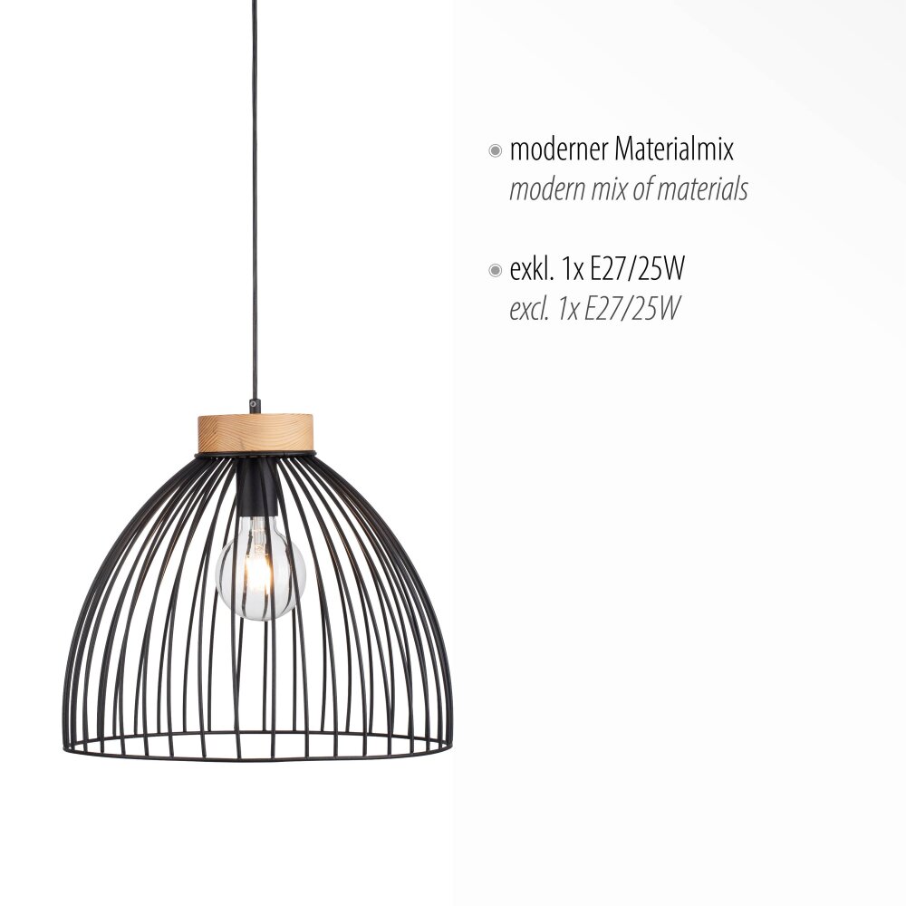 Leuchten-Direkt LAMI Hanger Natuurlijke kleuren, Zwart, 1-licht