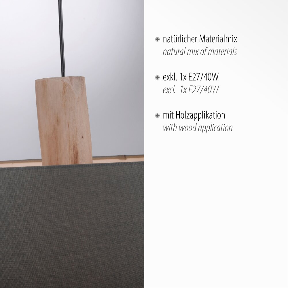 Leuchten-Direkt LINEN Hanglamp Natuurlijke kleuren, Zwart, 2-lichts