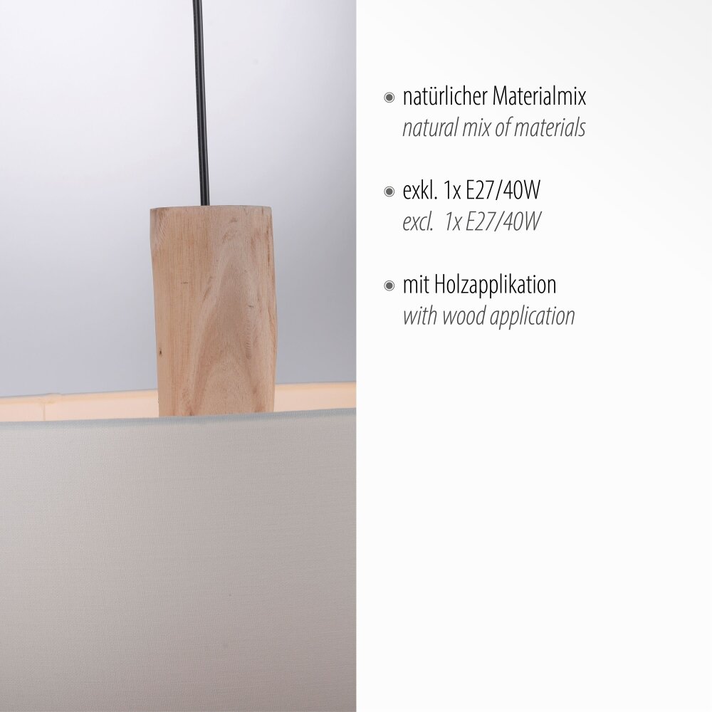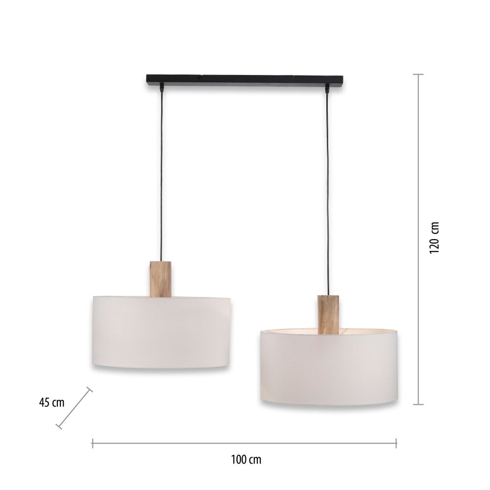 Leuchten-Direkt LINEN Hanglamp Natuurlijke kleuren, Zwart, 2-lichts