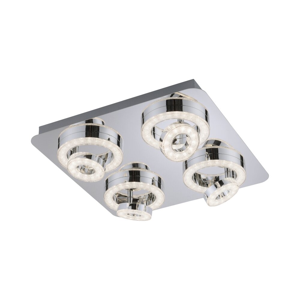 Leuchten Direkt Ls-TIM Plafondlamp LED Chroom, 4-lichts, Afstandsbediening, Kleurwisselaar