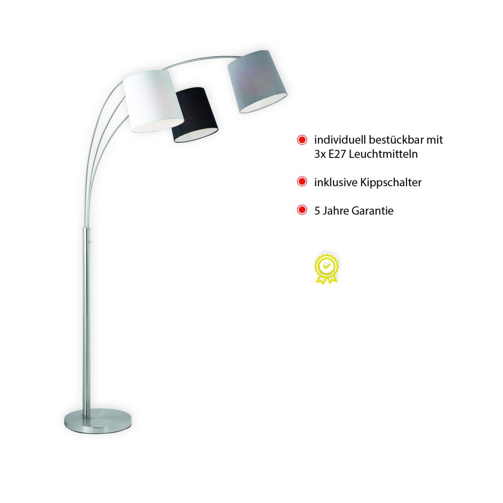 Leuchten-Direkt MELVIN Staande lamp Grijs, Zwart, Wit, 3-lichts