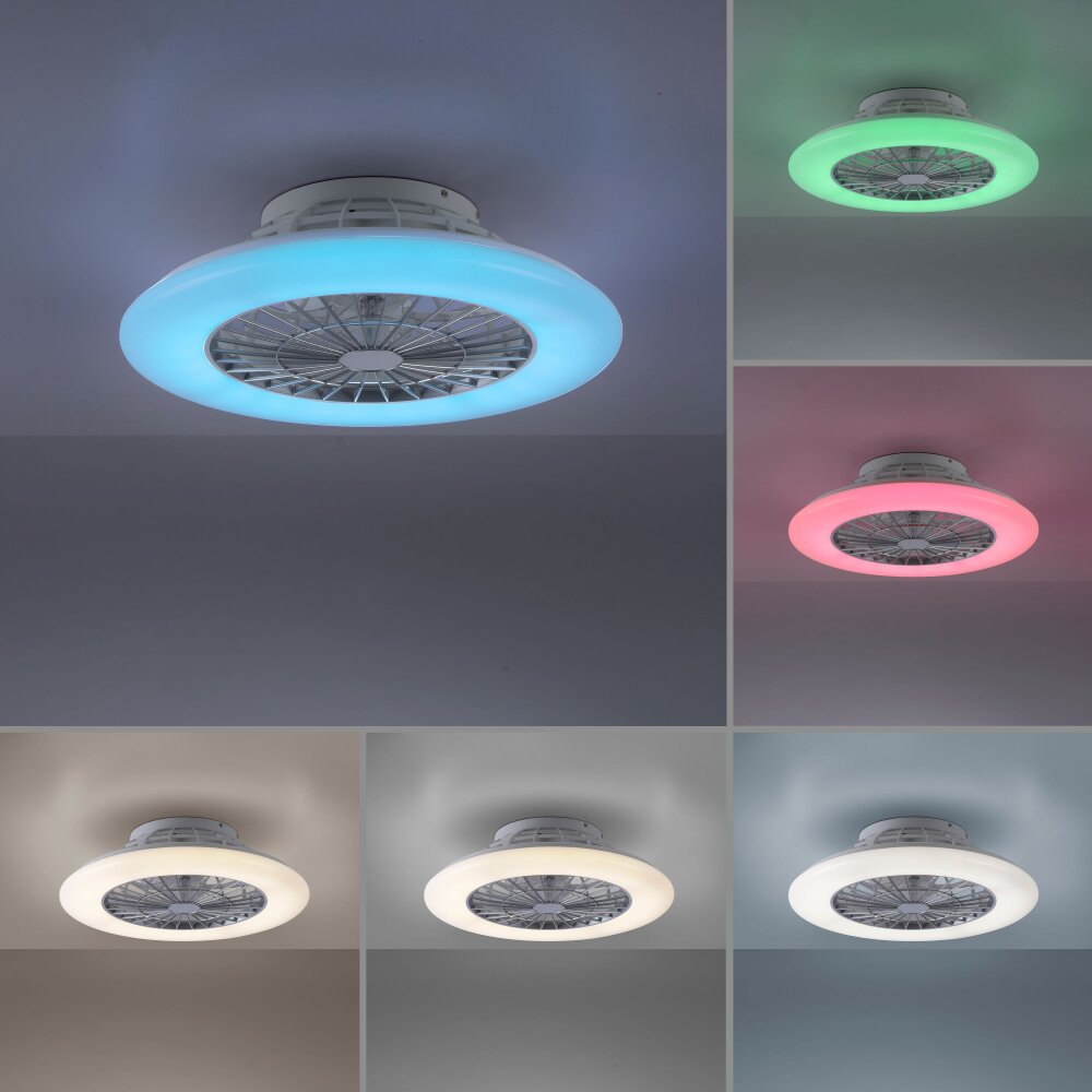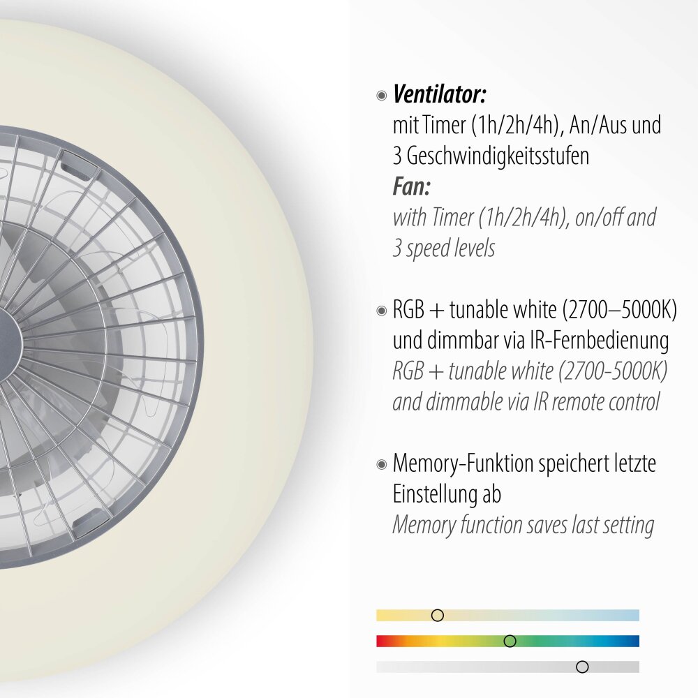 Leuchten-Direkt PATRICK plafondventilator LED Zilver, 1-licht, Afstandsbediening, Kleurwisselaar