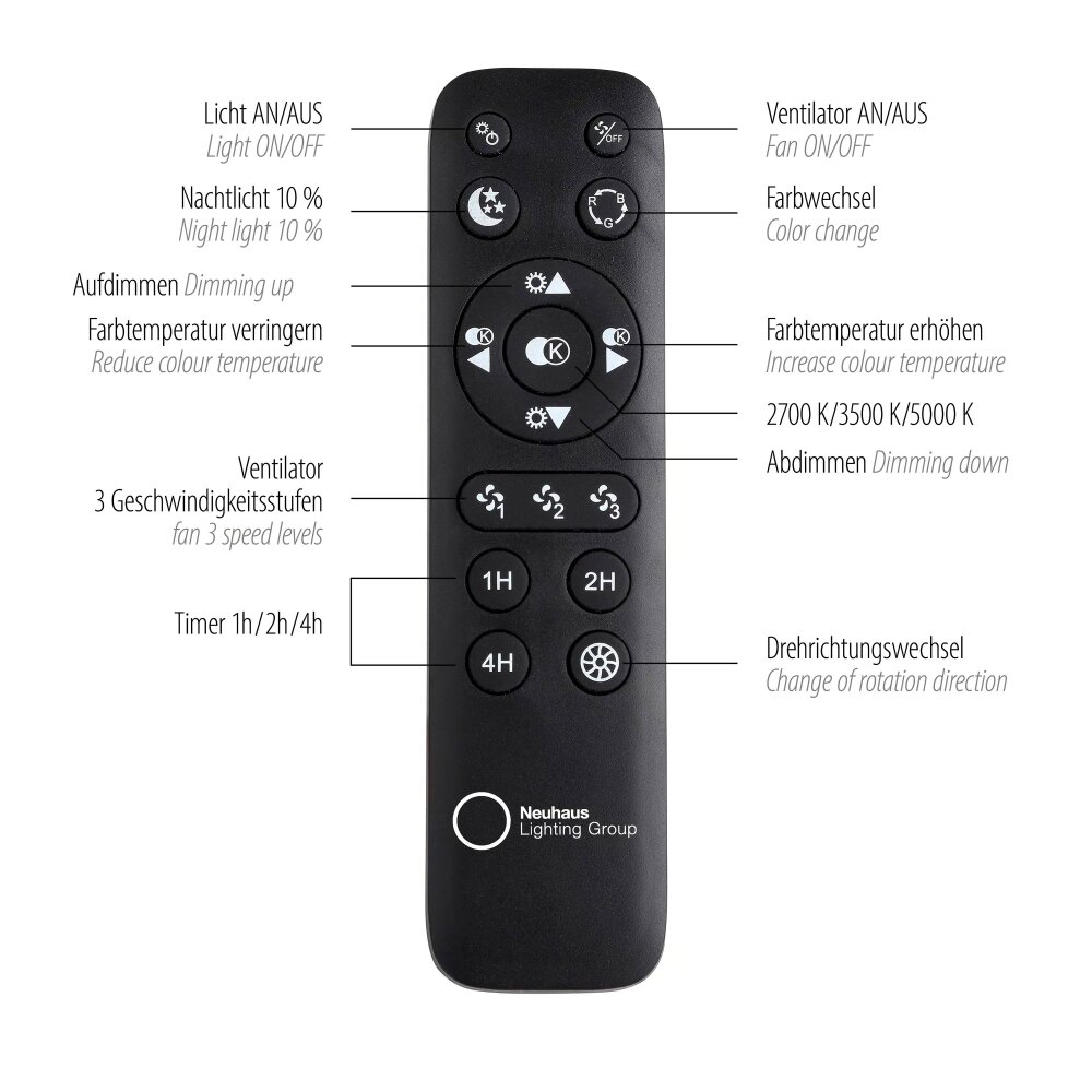 Piraeus plafondventilator LED Titan, Wit, 1-licht, Afstandsbediening